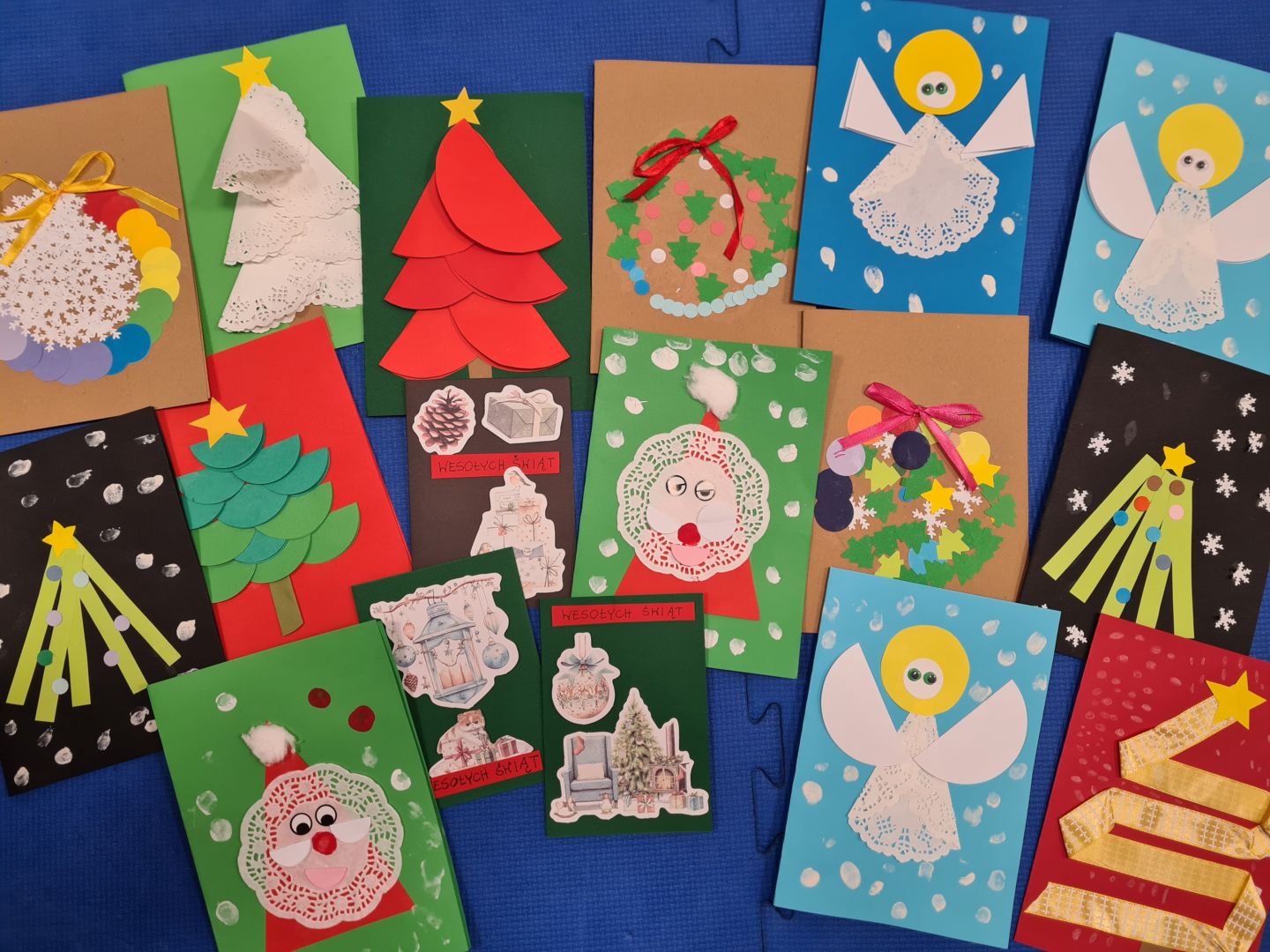 Gotowe kartki zostały dostarczone do Domu Kultury Remiza w Plewiskach, skąd trafią do seniorów, by sprawić im radość i wnieść świąteczną atmosferę.