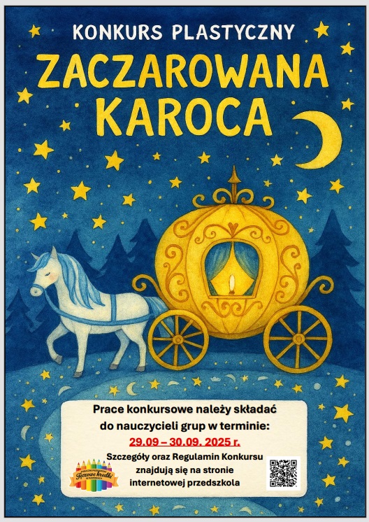 „Zaczarowana karoca” – konkurs plastycznyAktualności, Kraina Czerwona, Kraina Fioletowa, Kraina Granatowa, Kraina Niebieska, Kraina Pomarańczowa, Kraina Zielona, Kraina ŻółtaCzytaj dalej 21 września 2025/Autor Anna Wiśniewska https://teczowekredki.pl/wp-content/uploads/2025/09/Zaczarowana-Karoca-plakat.jpg 746 528 Anna Wiśniewska https://teczowekredki.pl/wp-content/uploads/2018/09/logotyp_teczowe_kredki.png Anna Wiśniewska2025-09-21 12:31:462025-09-21 12:58:30„Zaczarowana karoca” – konkurs plastyczny