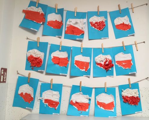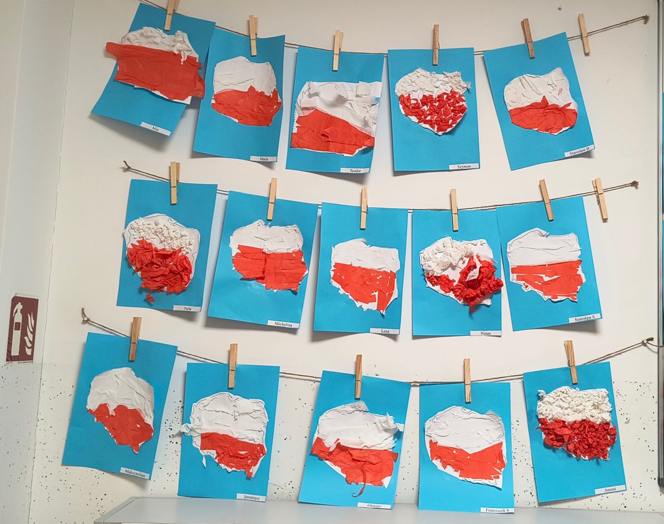 Praca plastyczna „Rogal świętomarciński„ wykonana za pomocą pasteli...Praca plastyczna „Flaga Polski” wykonana techniką łączoną (naklejanie,...