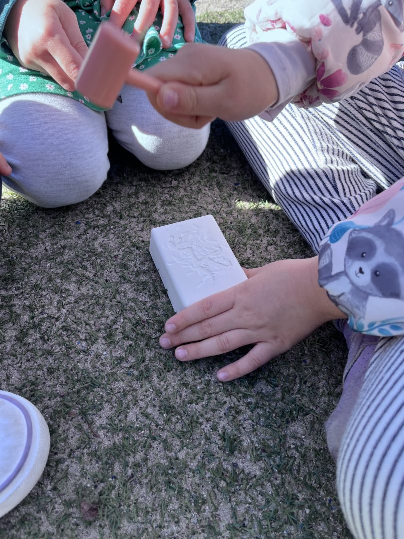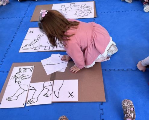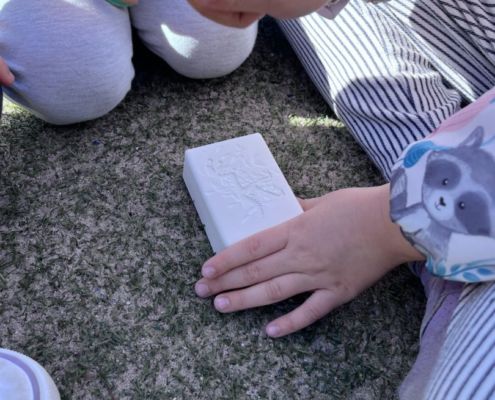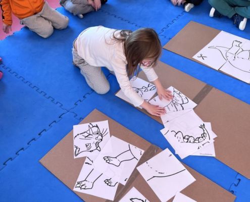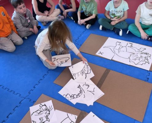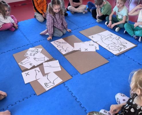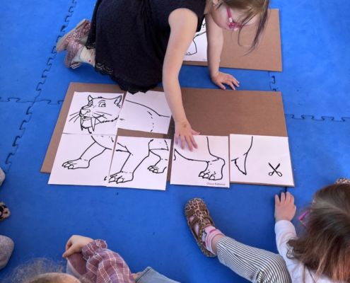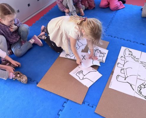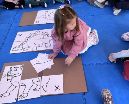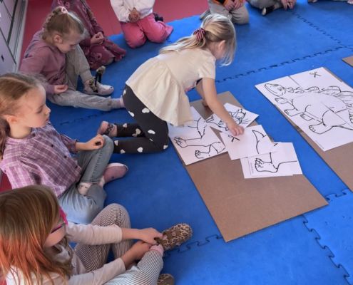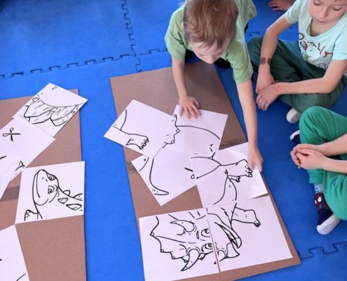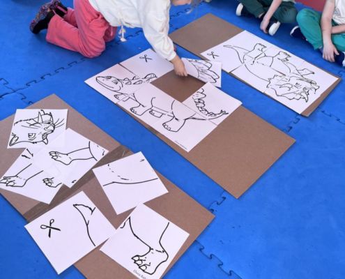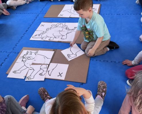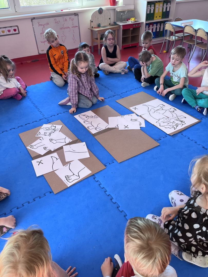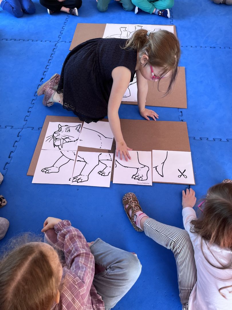 W tym tygodniu zgłębialiśmy wiedzę na temat prehistorycznych olbrzymów. Wykonywaliśmy pracę plastyczną oraz bawiliśmy się gipsem (w archeologów). Składaliśmy też obrazek z części.