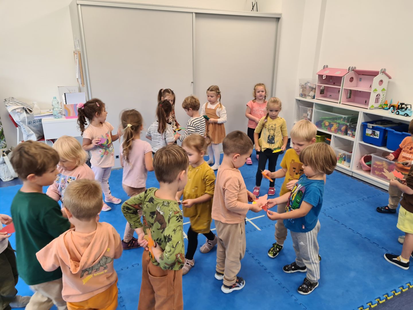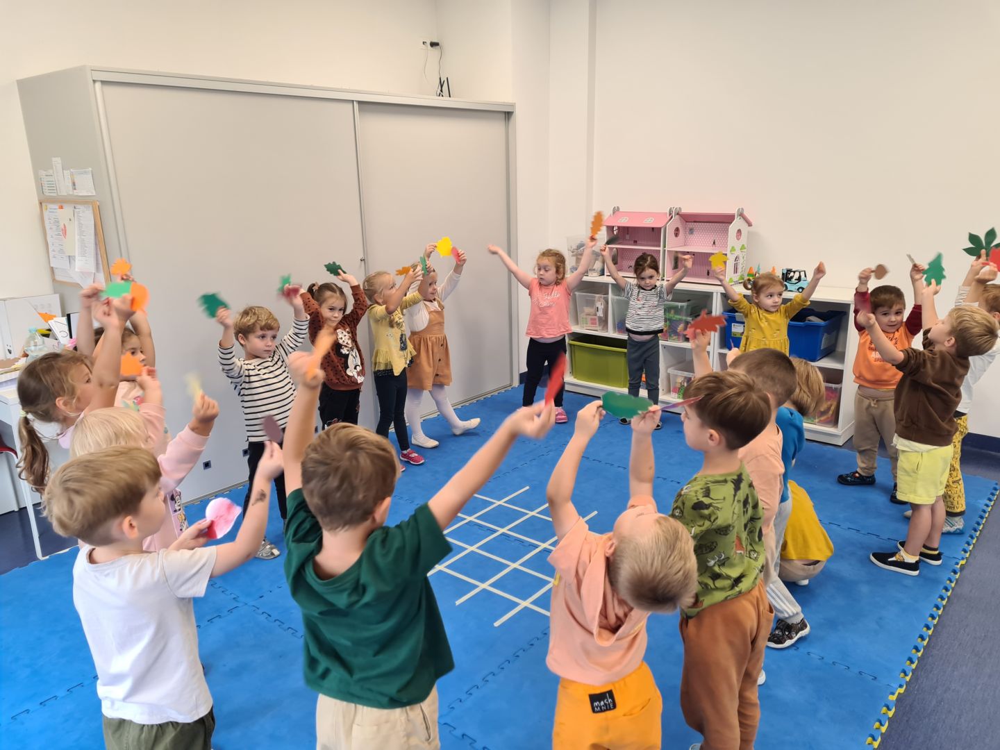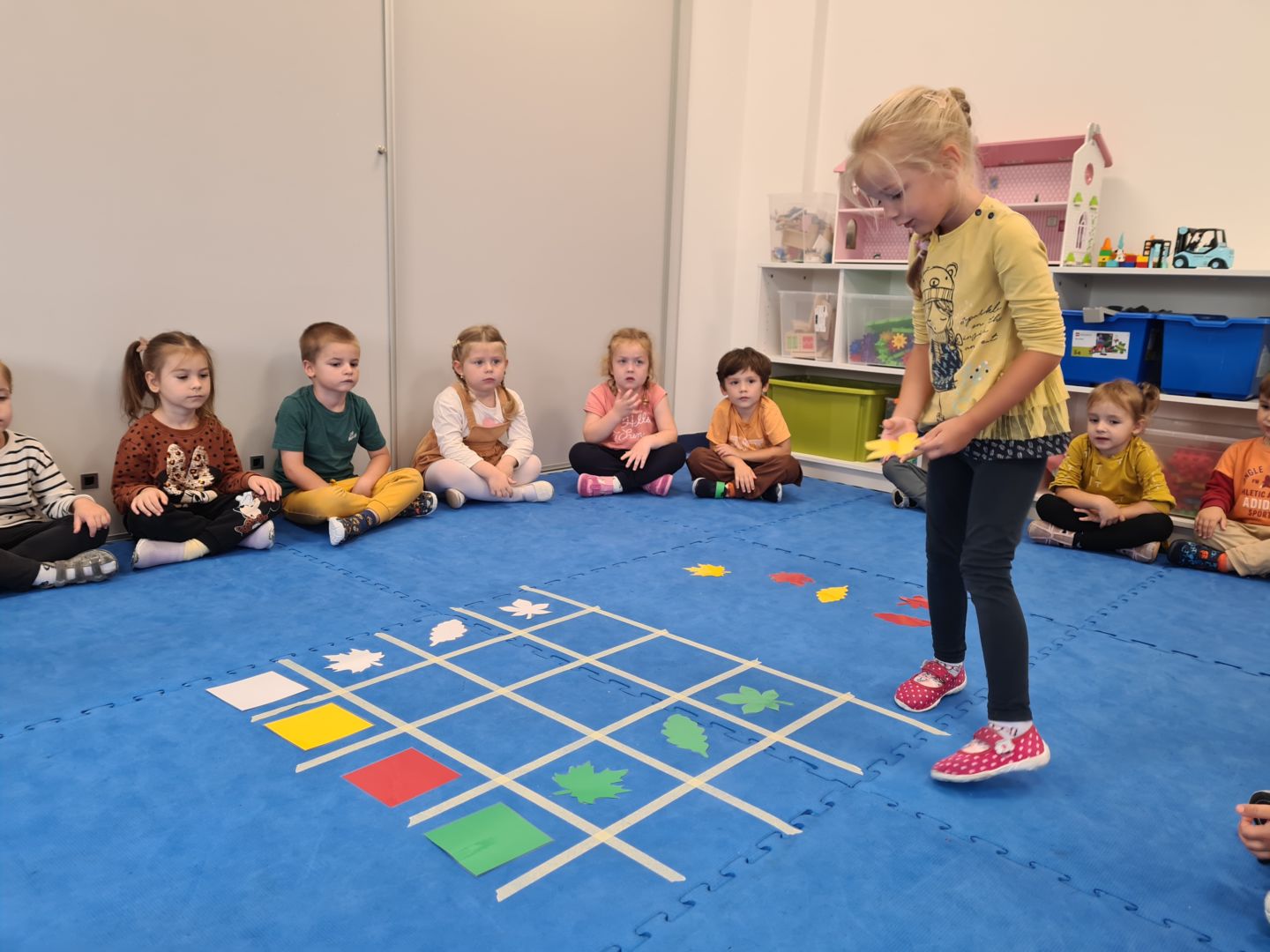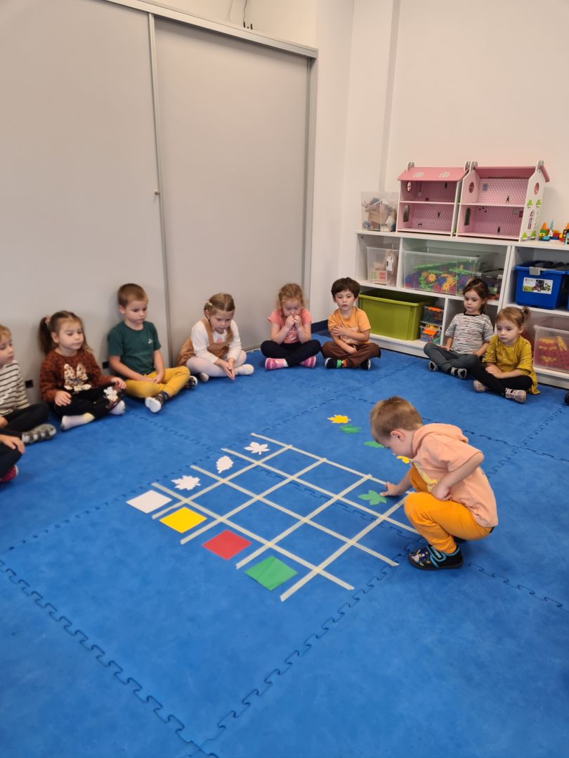 Jesienne zabawy- tańce integracyjne, kodowanie na dywanie, praca plastyczna