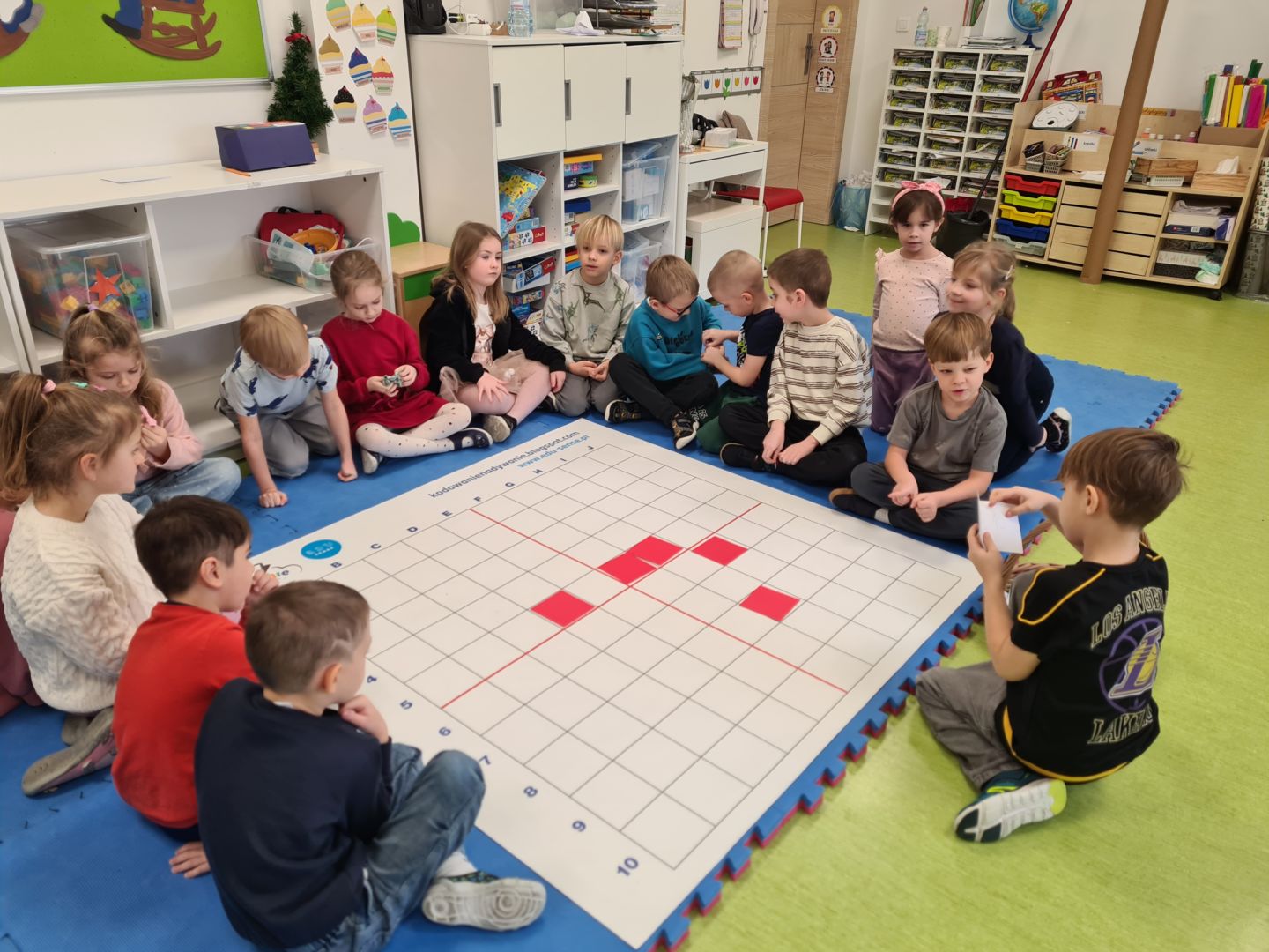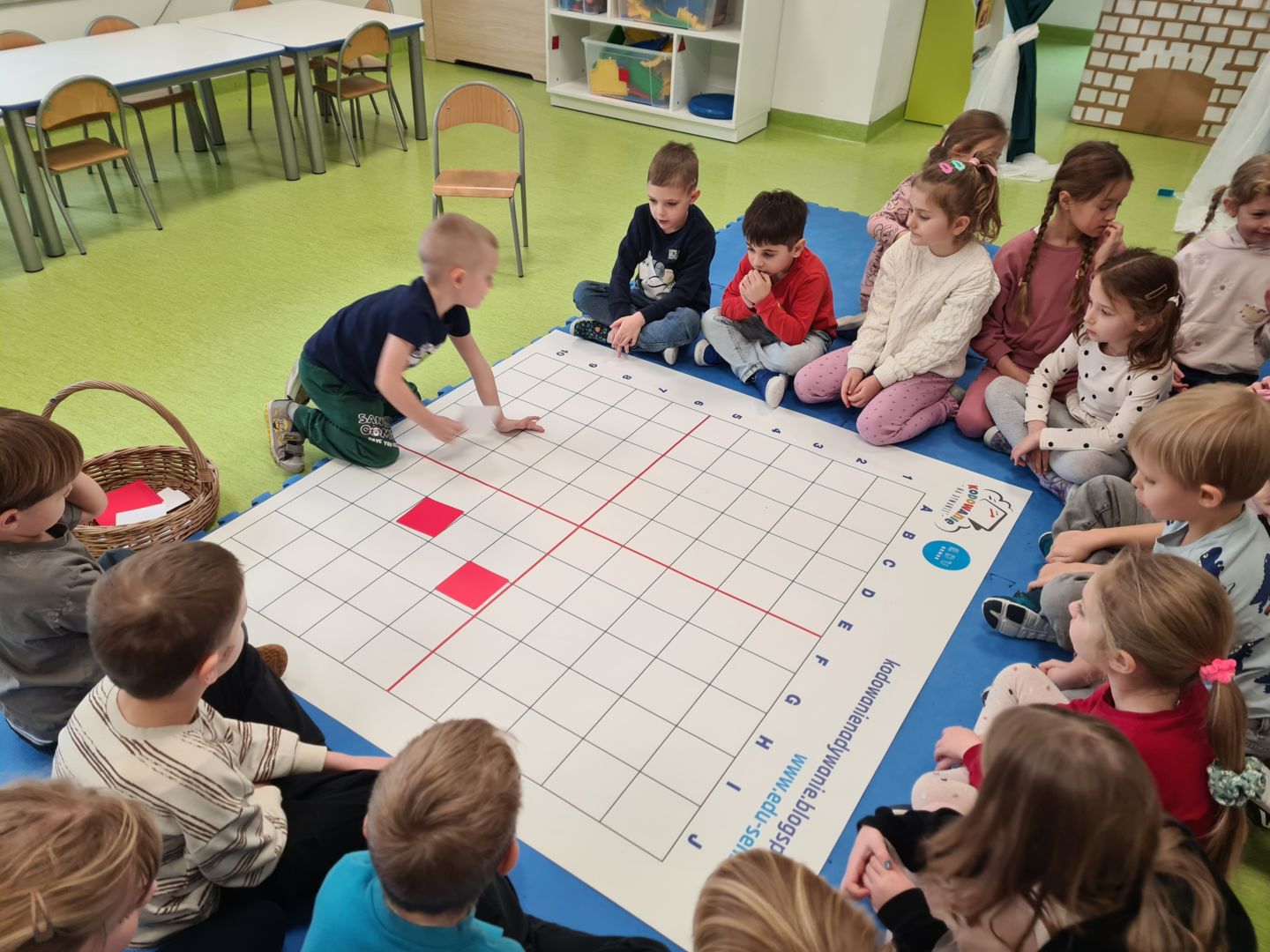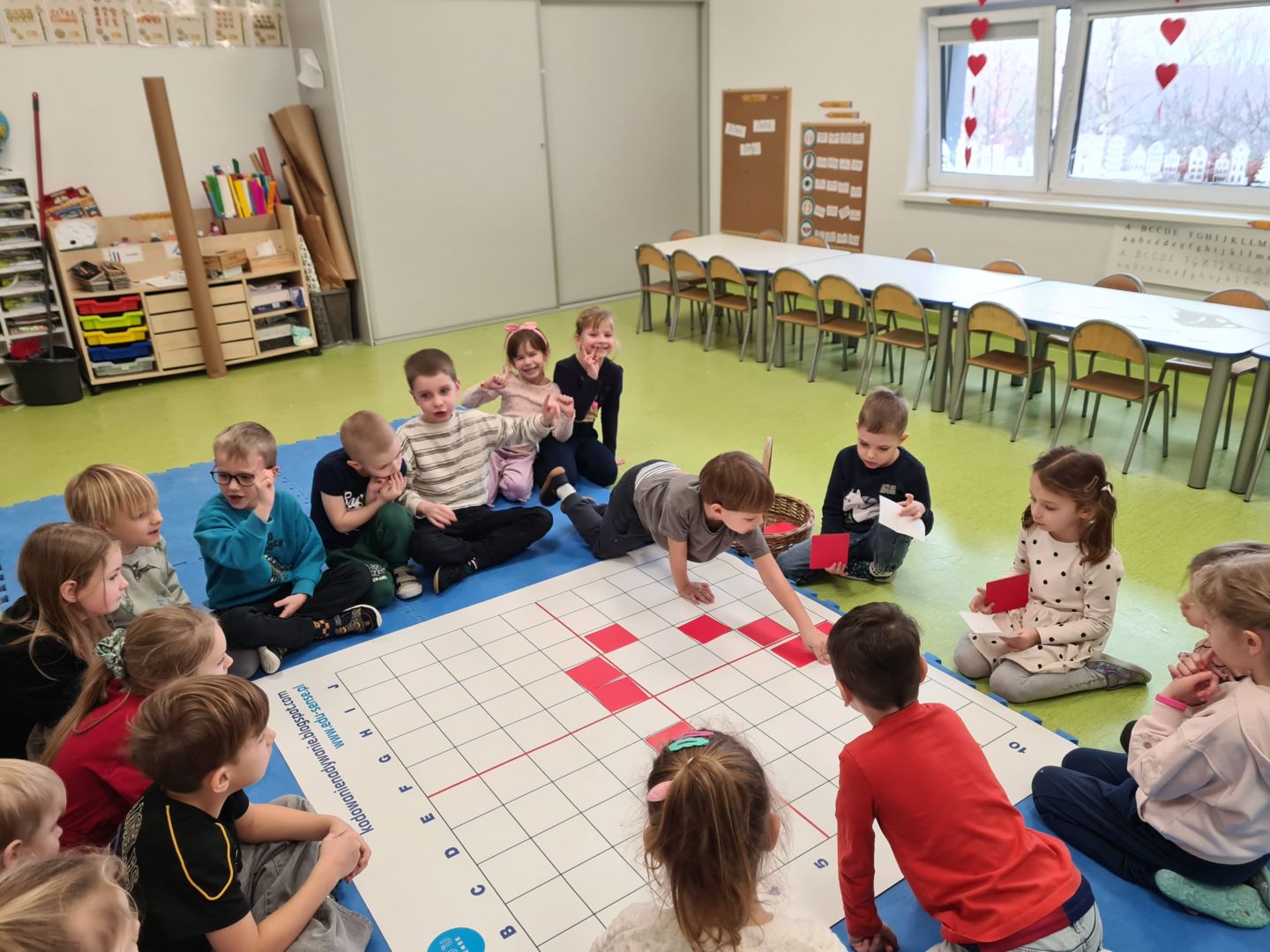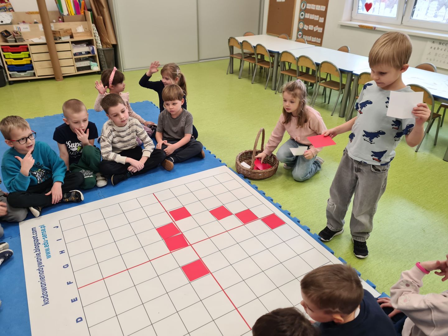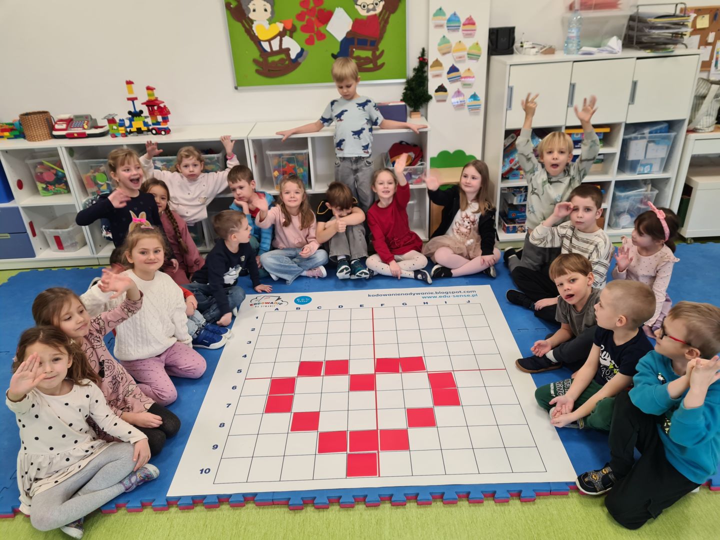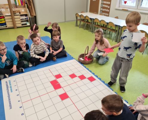 Kodowanie na dywanie „Dzień Babci i Dziadka”- układanie wg współrzędnych, składanie obrazka z części