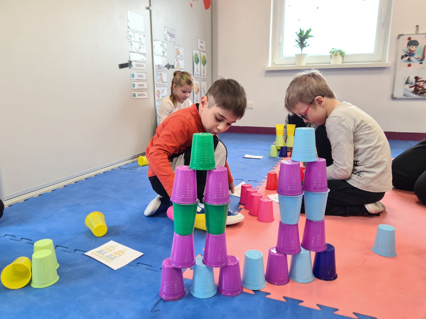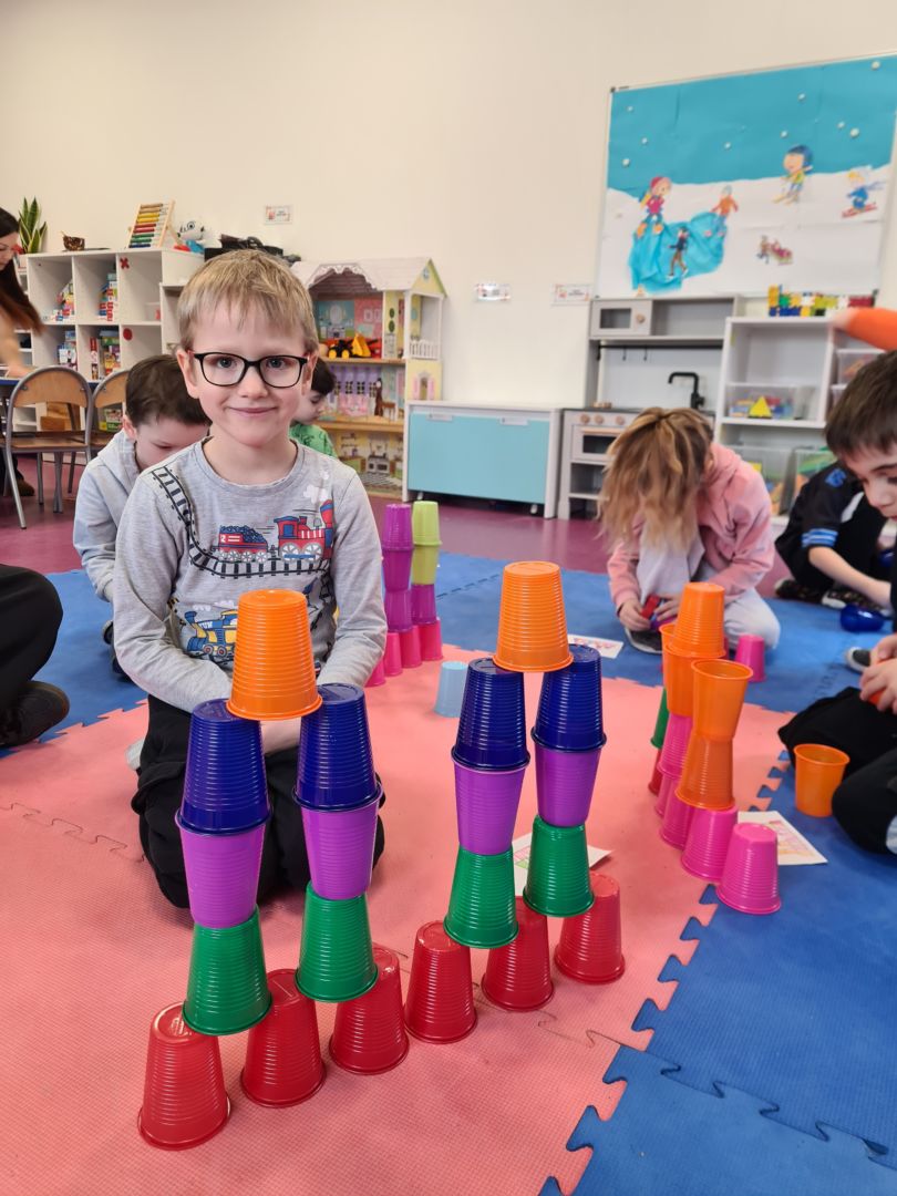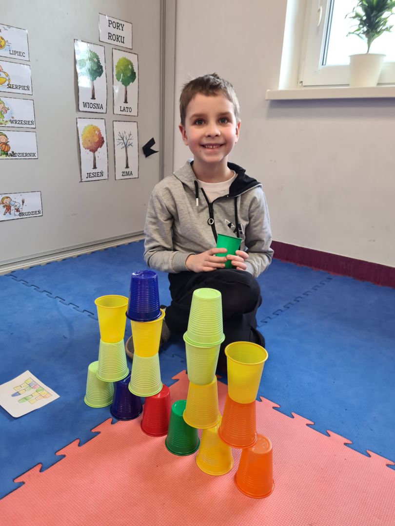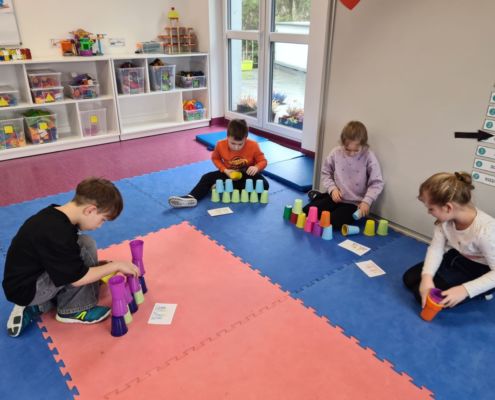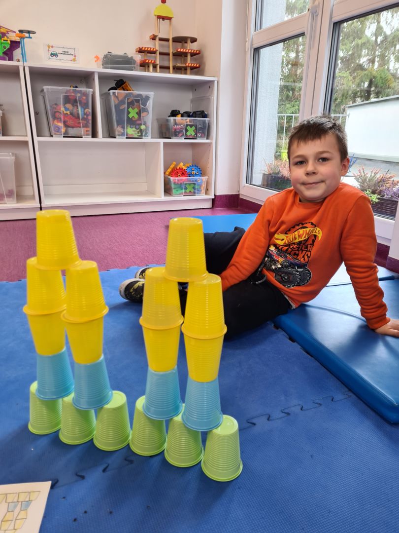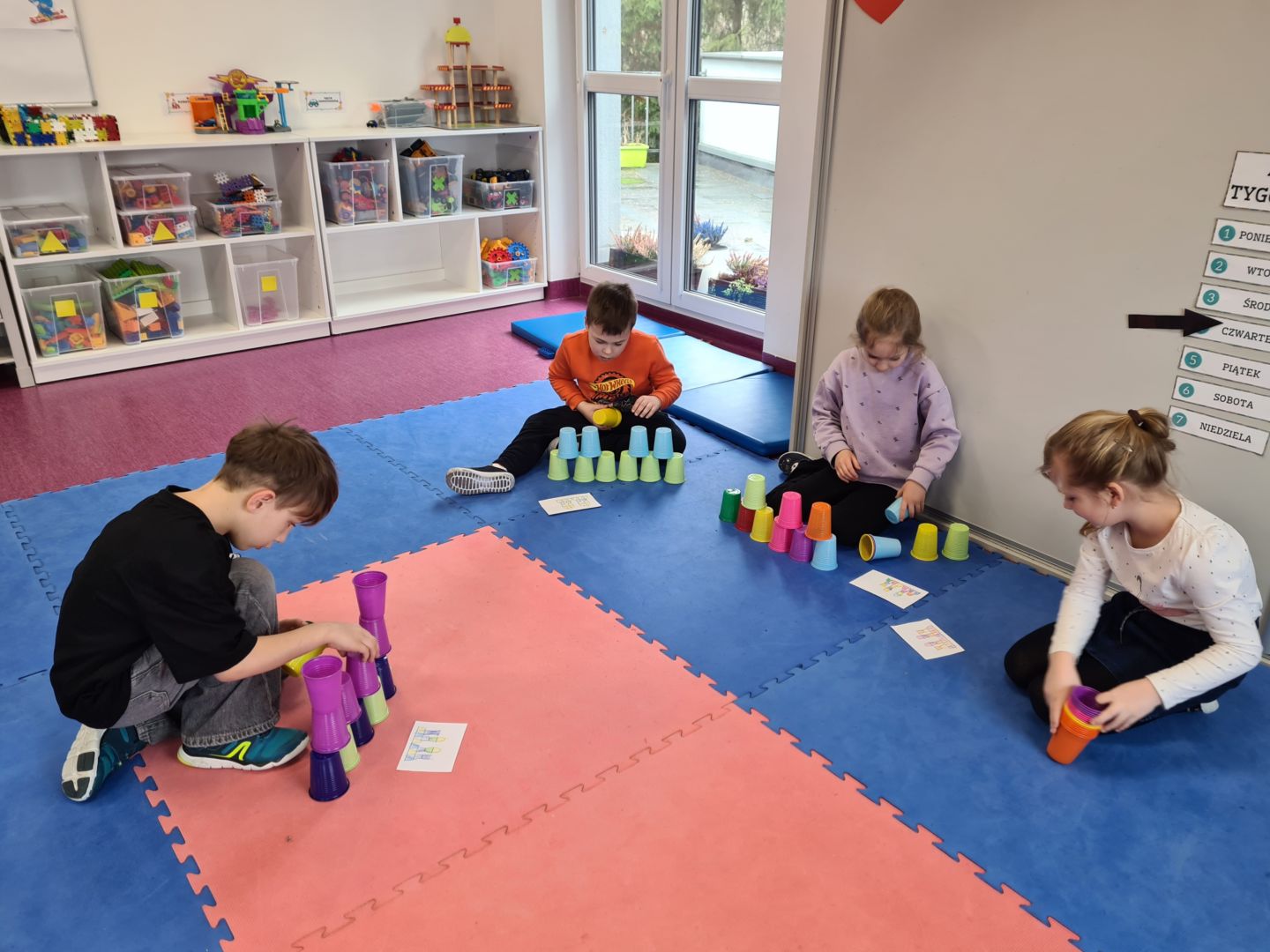 Kodowanie na dywanie „Kolorowe wieże”- układanie wg własnego kodu