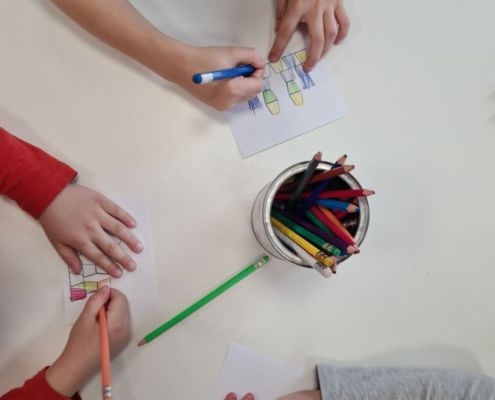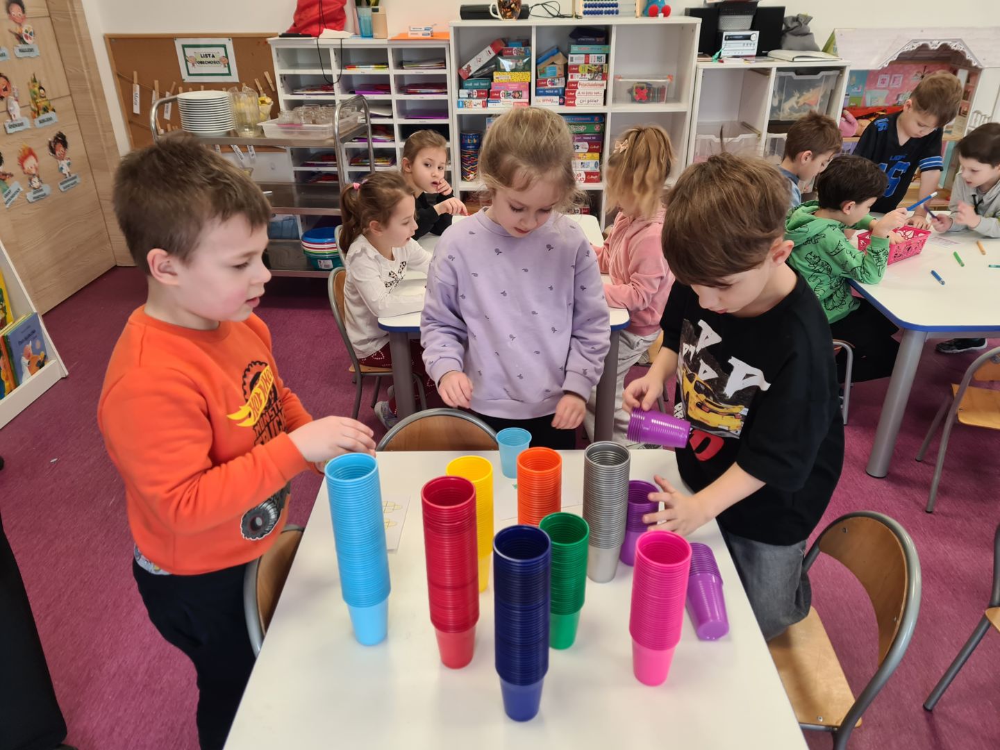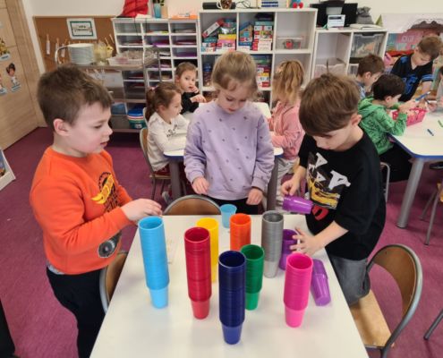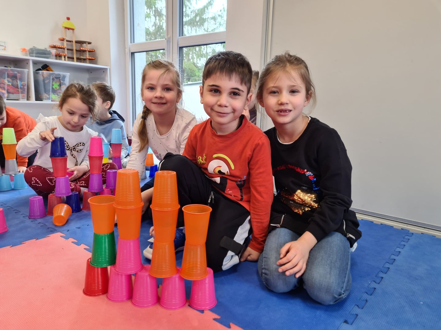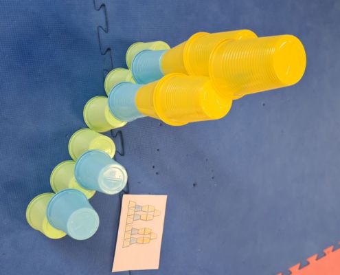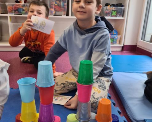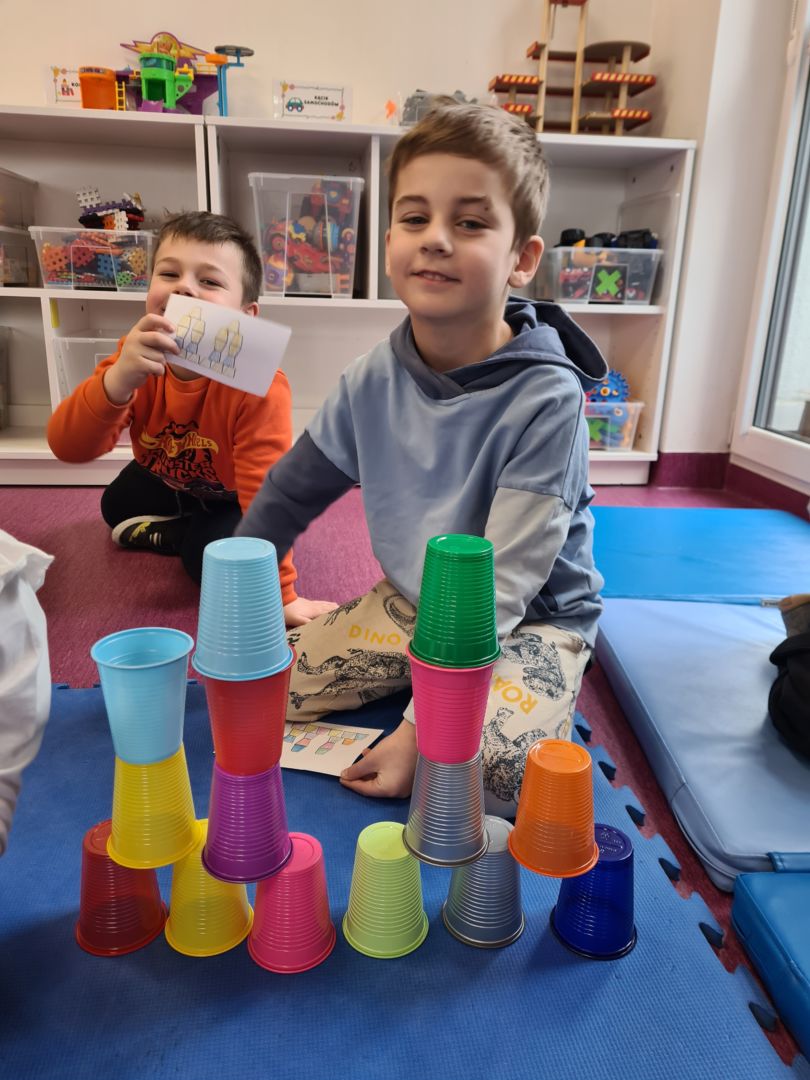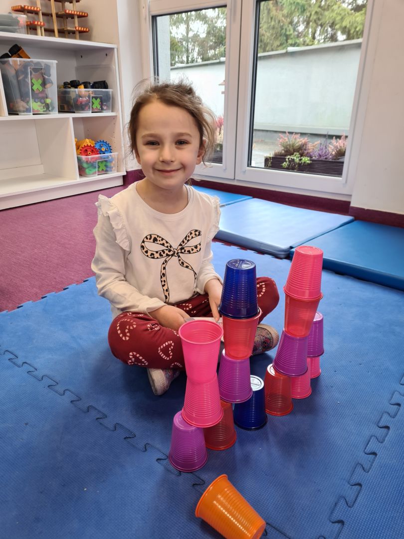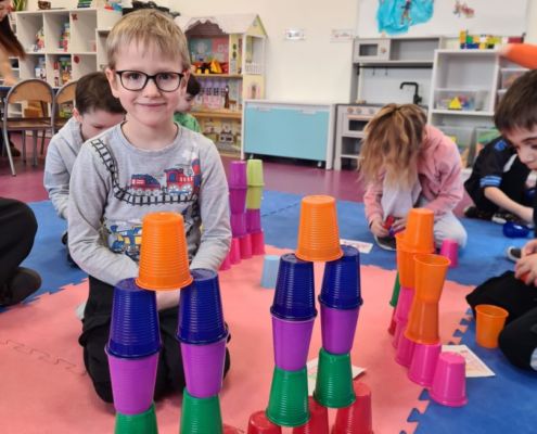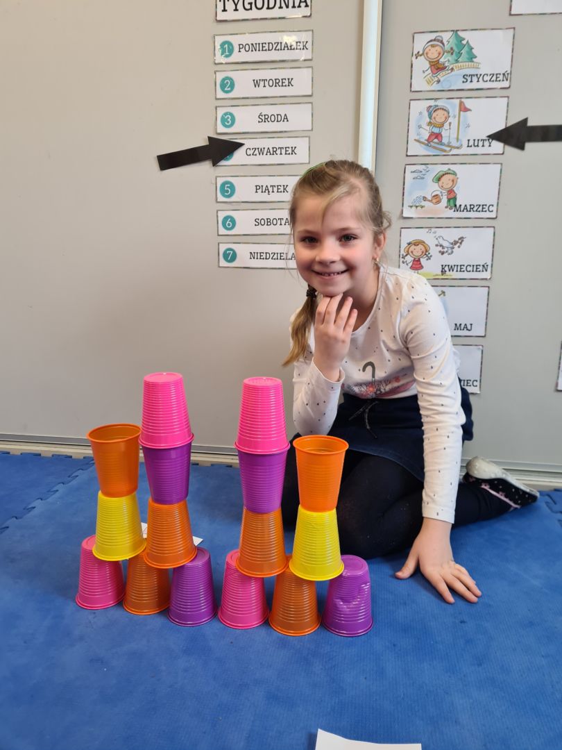 Kodowanie na dywanie „Kolorowe wieże”- układanie wg własnego kodu