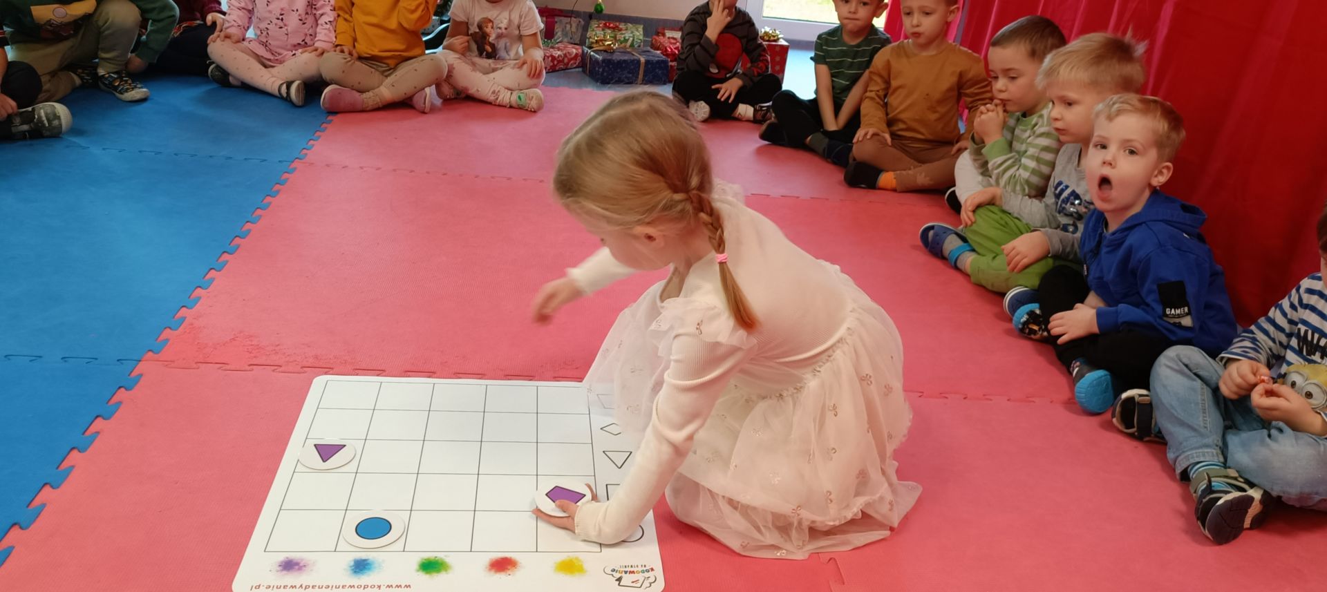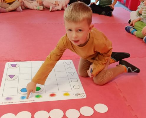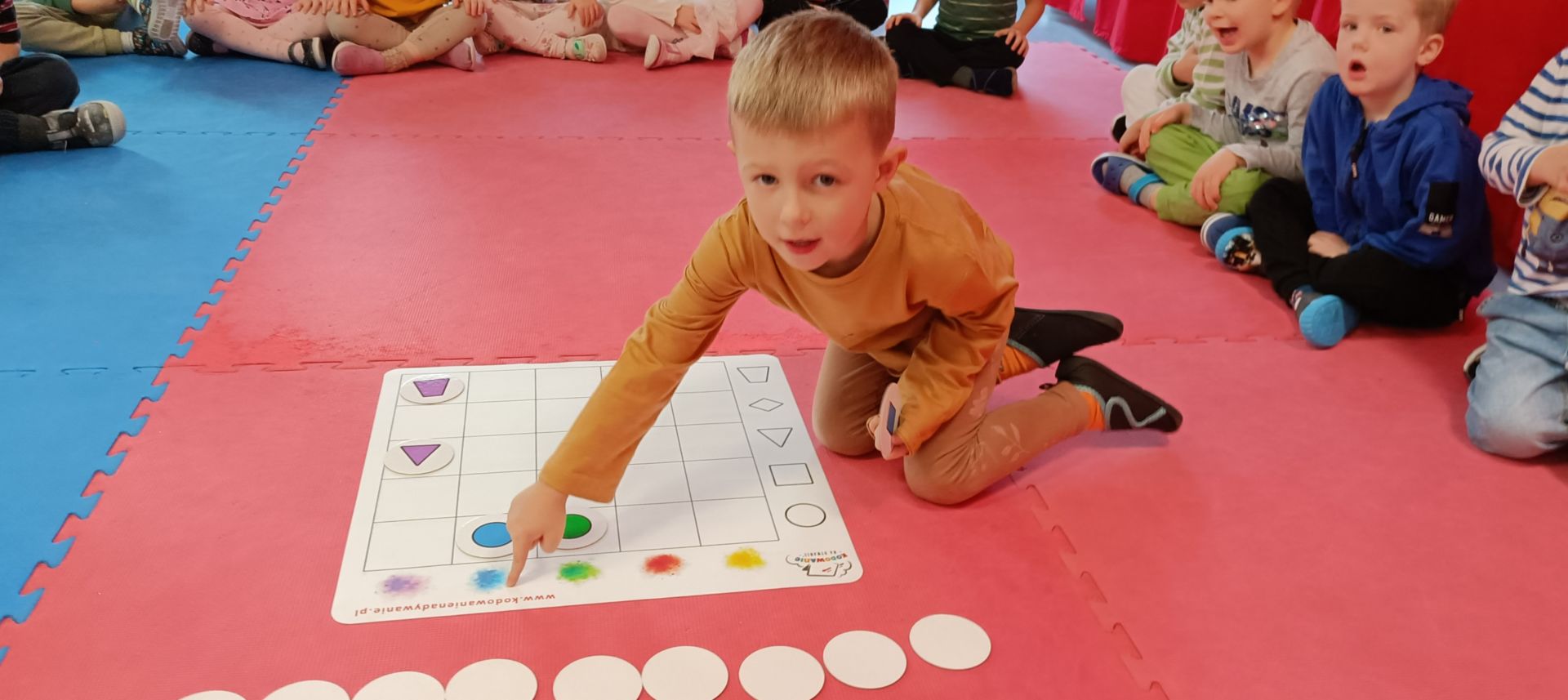 Kodowanie na dywanie – układanie kształtów wg kodu