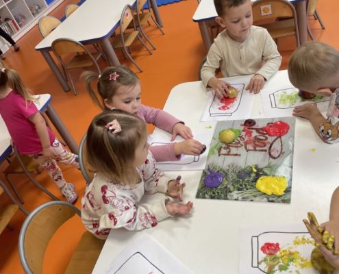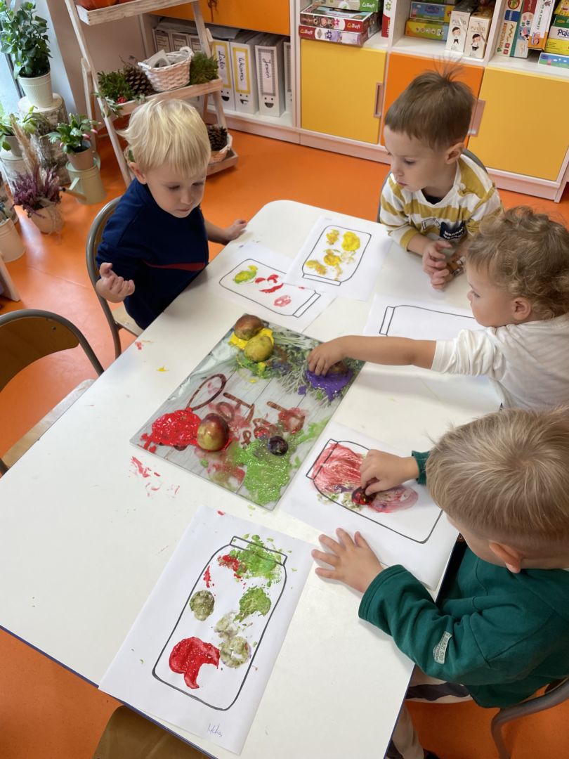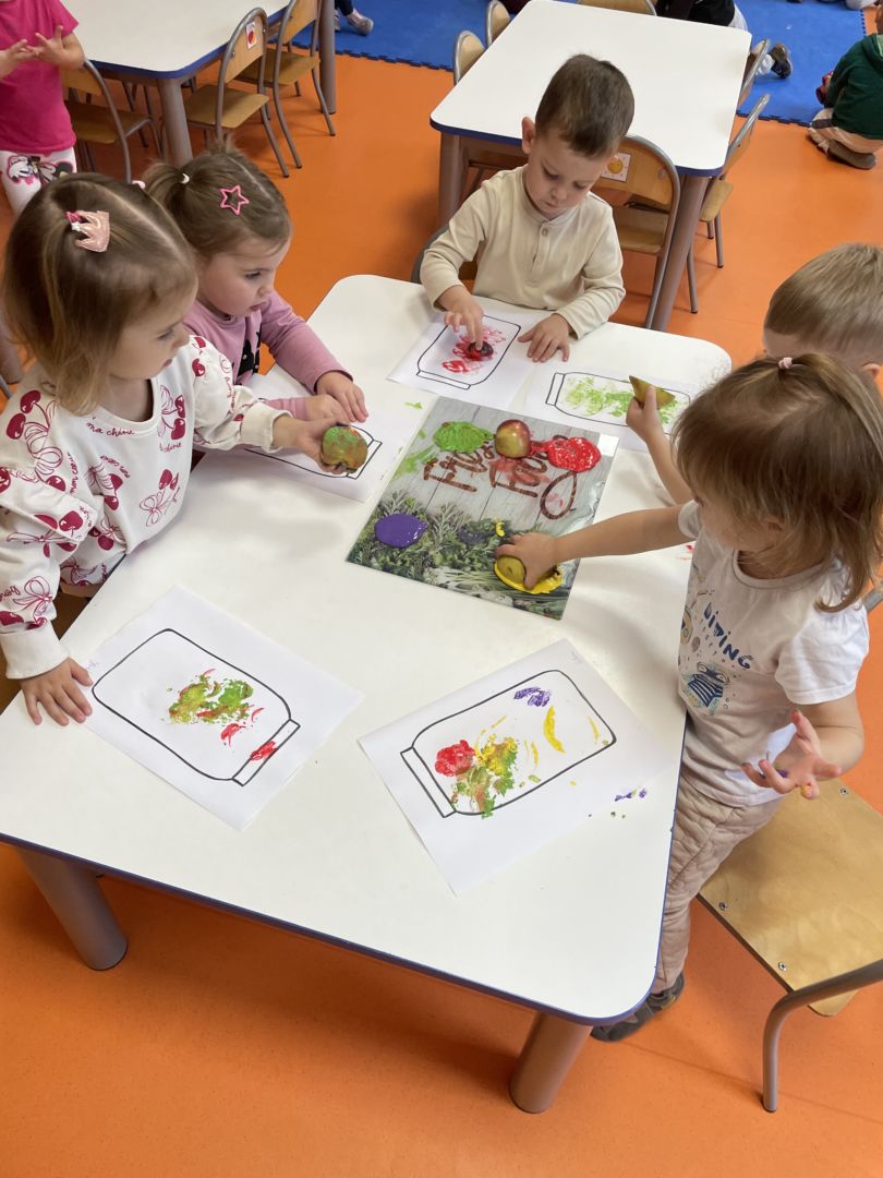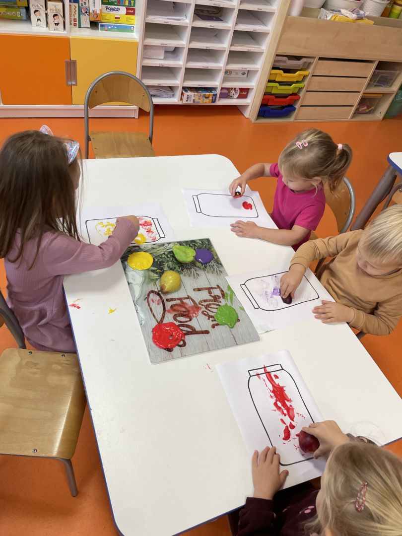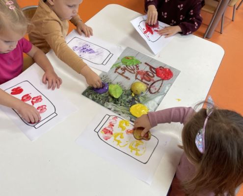 Praca plastyczna „Jesienne przetwory” – stemplowanie owocami