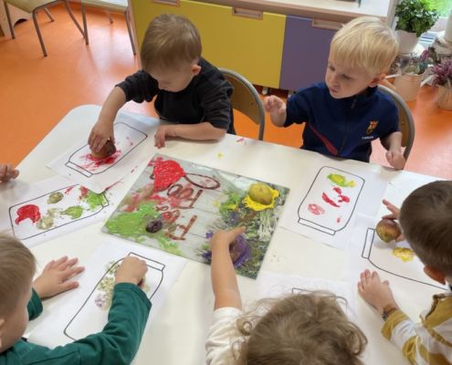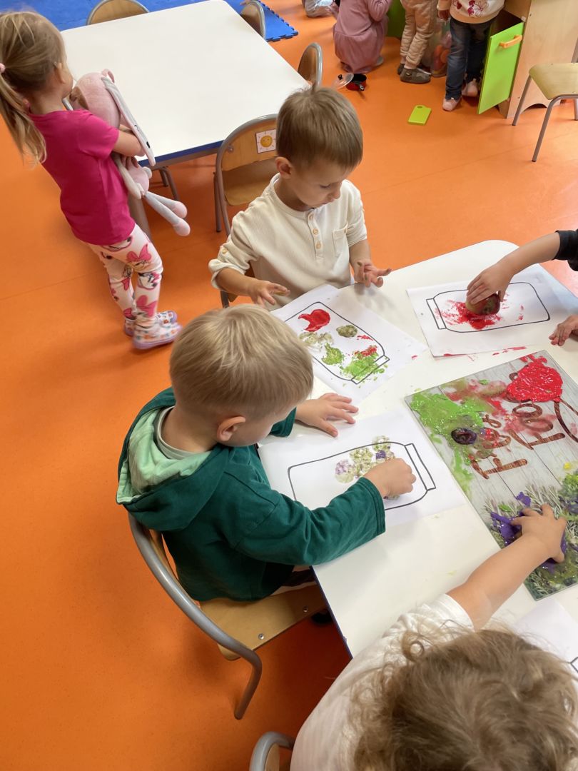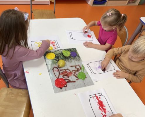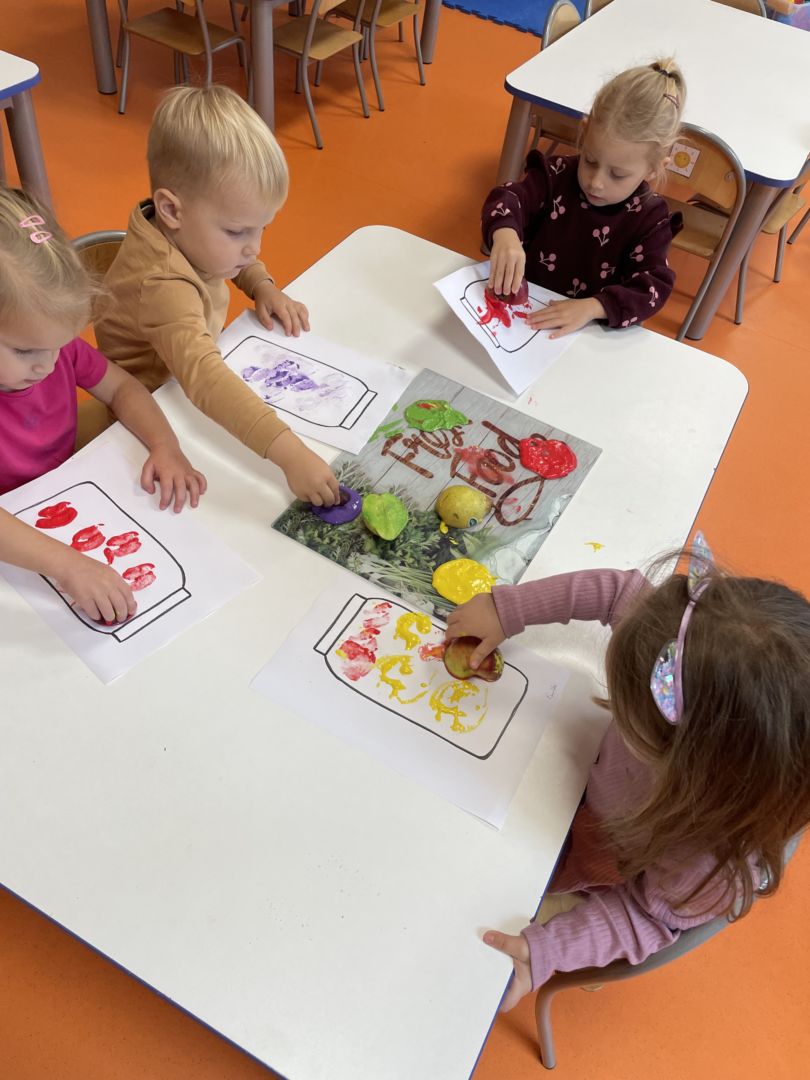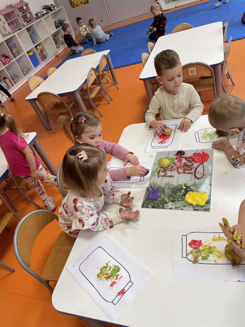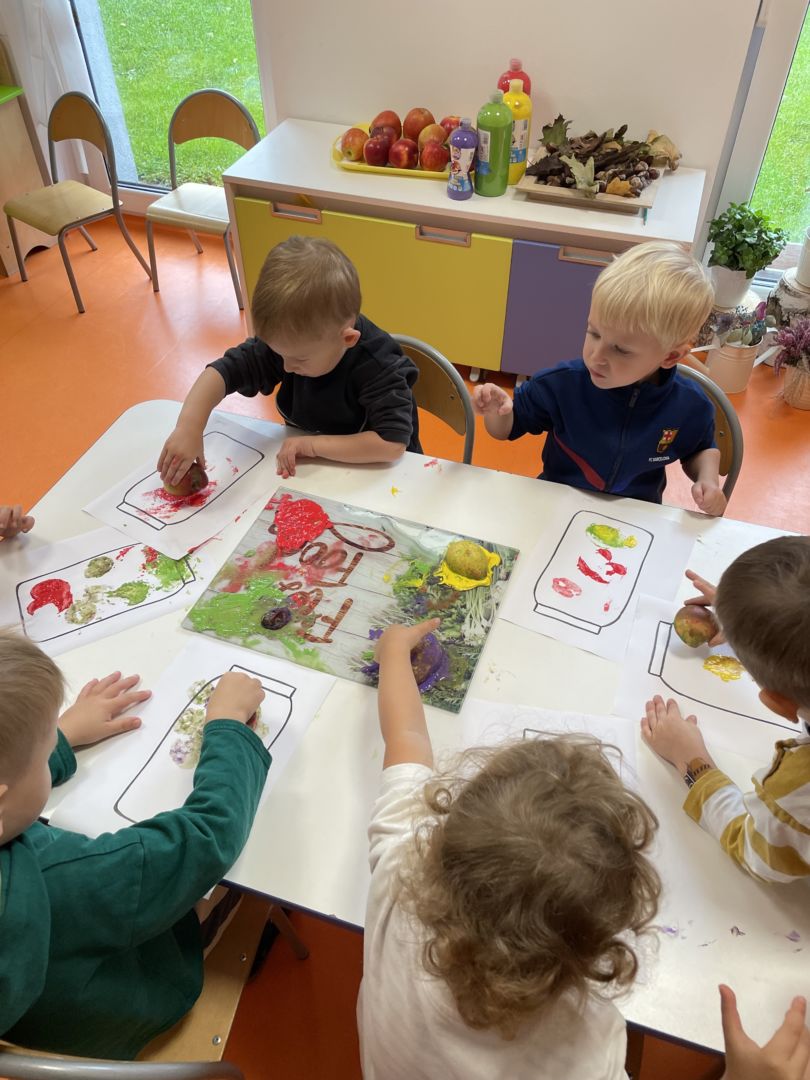 Praca plastyczna „Jesienne przetwory” – stemplowanie owocami