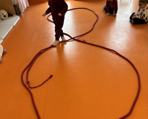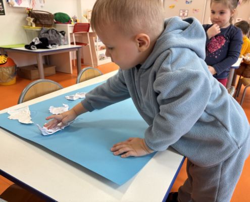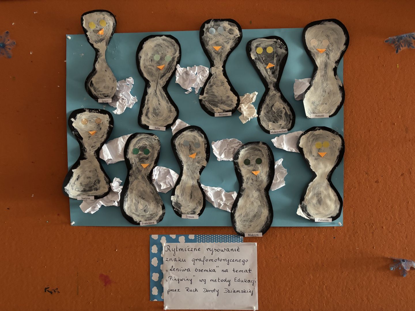 Rytmiczne kreślenie leniwej ósemki na temat „Pingwiny” z wykorzystaniem metody Edukacji przez Ruch D. Dziamskiej