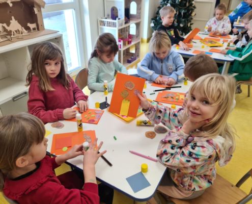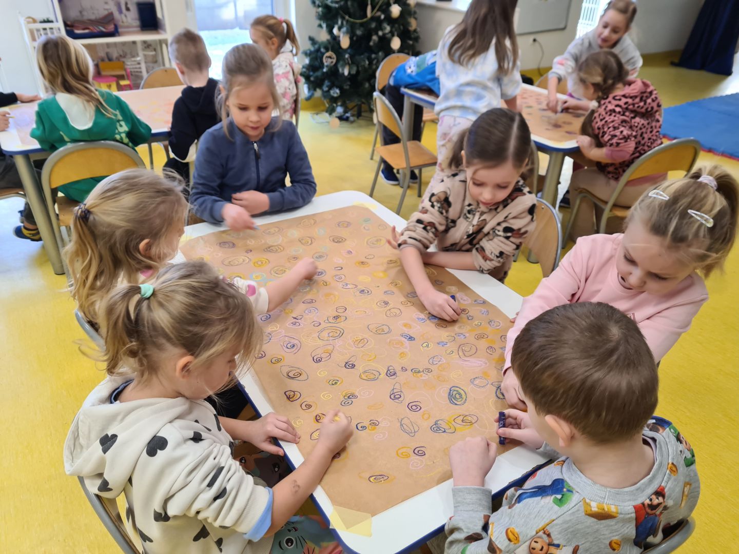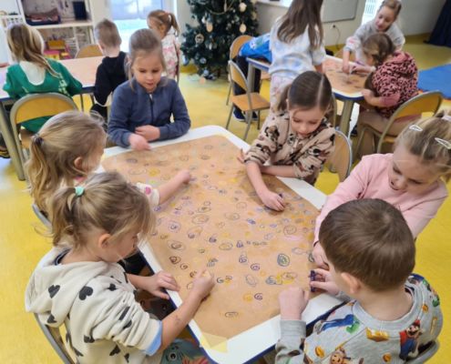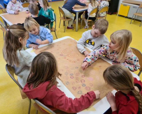 Rytmiczne kreślenie spirali na temat „Laurka dla dziadków” wg metody Edukacji przez ruch D. Dziamskiej