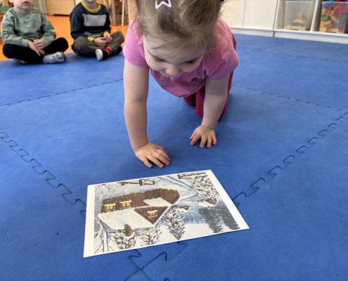 Rytmiczne rysowanie znaków literopodobnych na temat „Pejzaż zimowy” z wykorzystaniem metody Edukacji przez Ruch D. Dziamskiej
