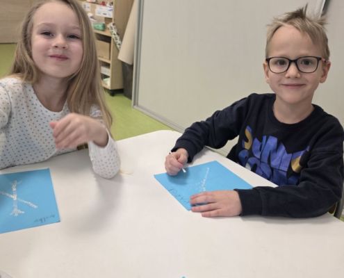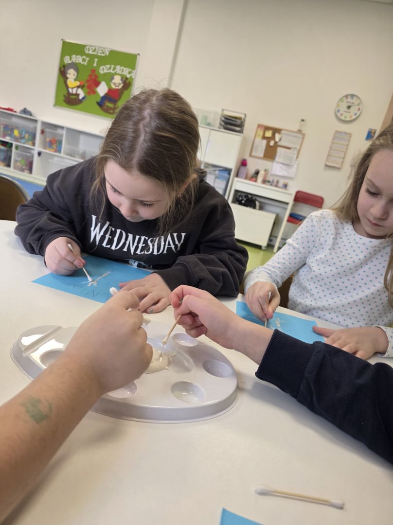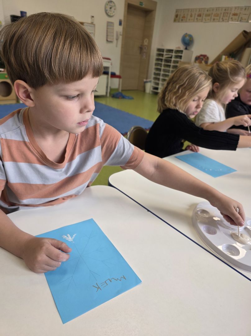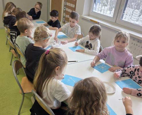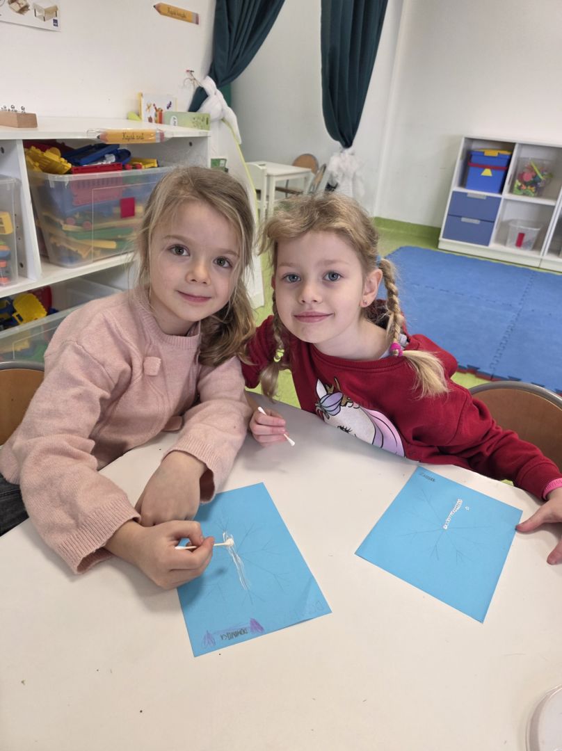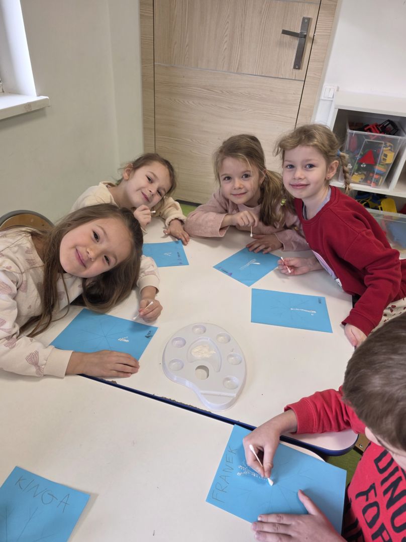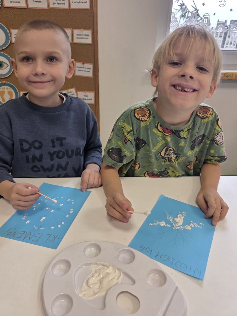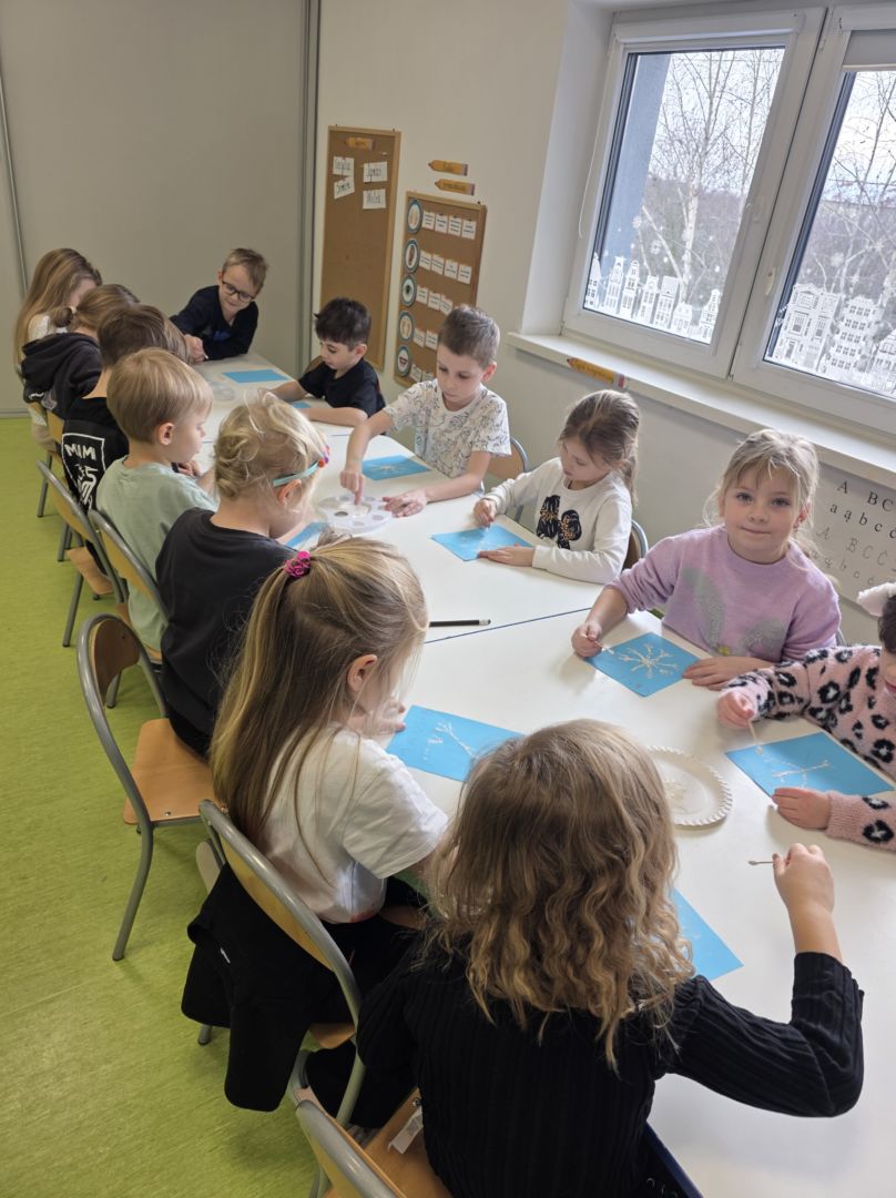 Śniezynka praca plastyczna techniką stemplowania