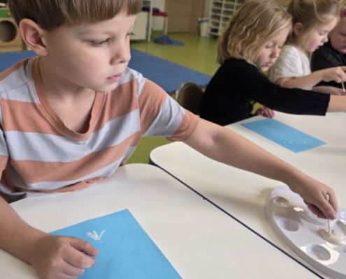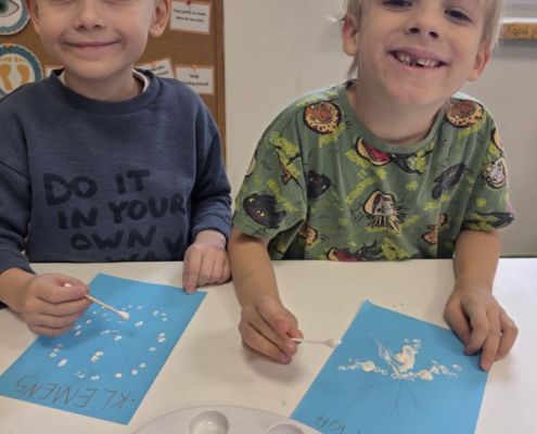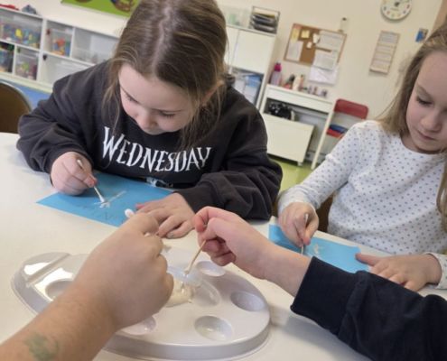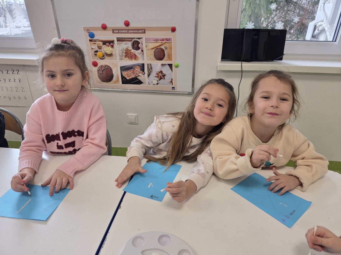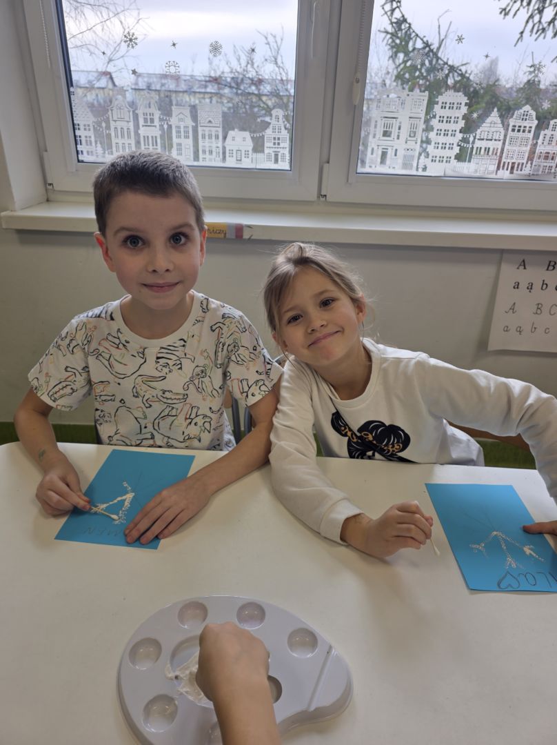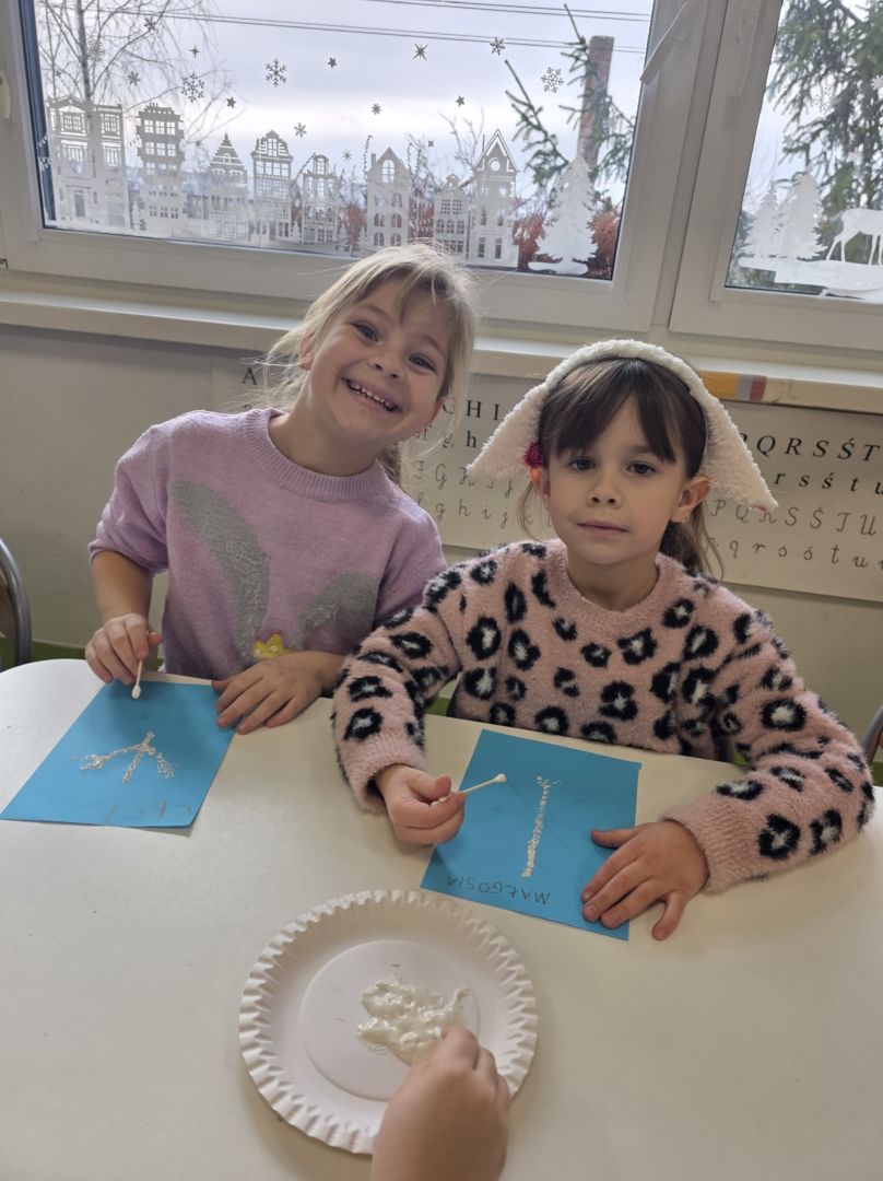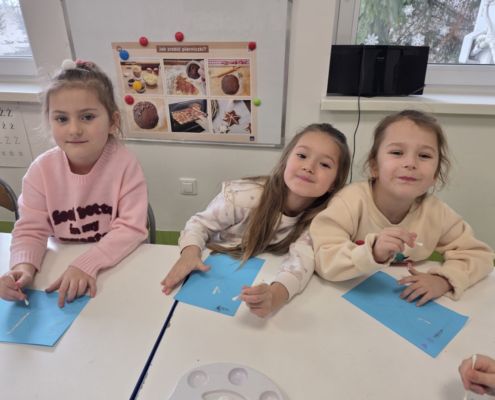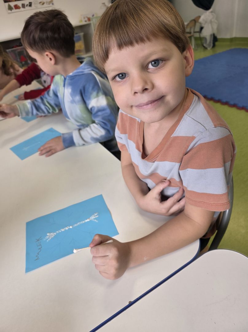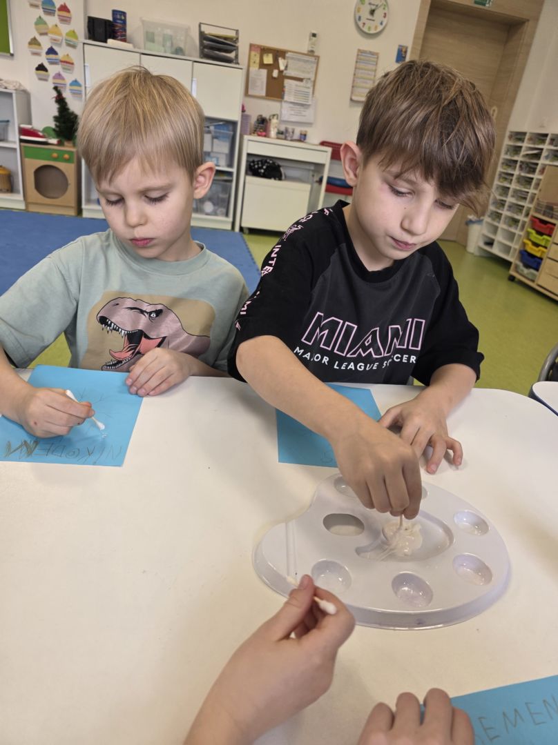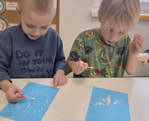 Śniezynka praca plastyczna techniką stemplowania