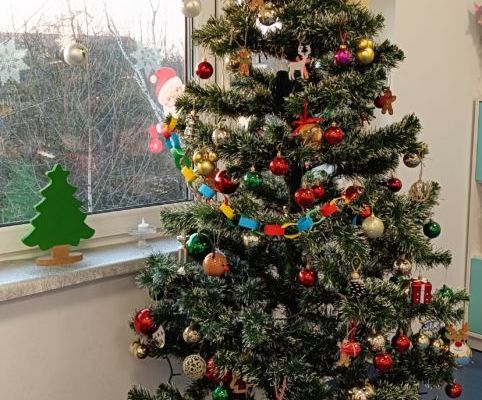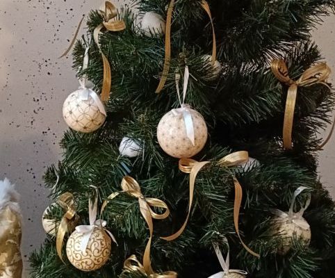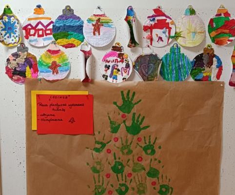 Praca plastyczna „Bombki” wykonana techniką ozdabiania