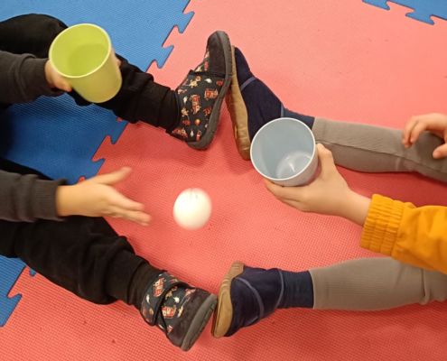 Wydobywanie dźwięków za pomocą różnych przedmiotów połączone z zabawami ruchowymi