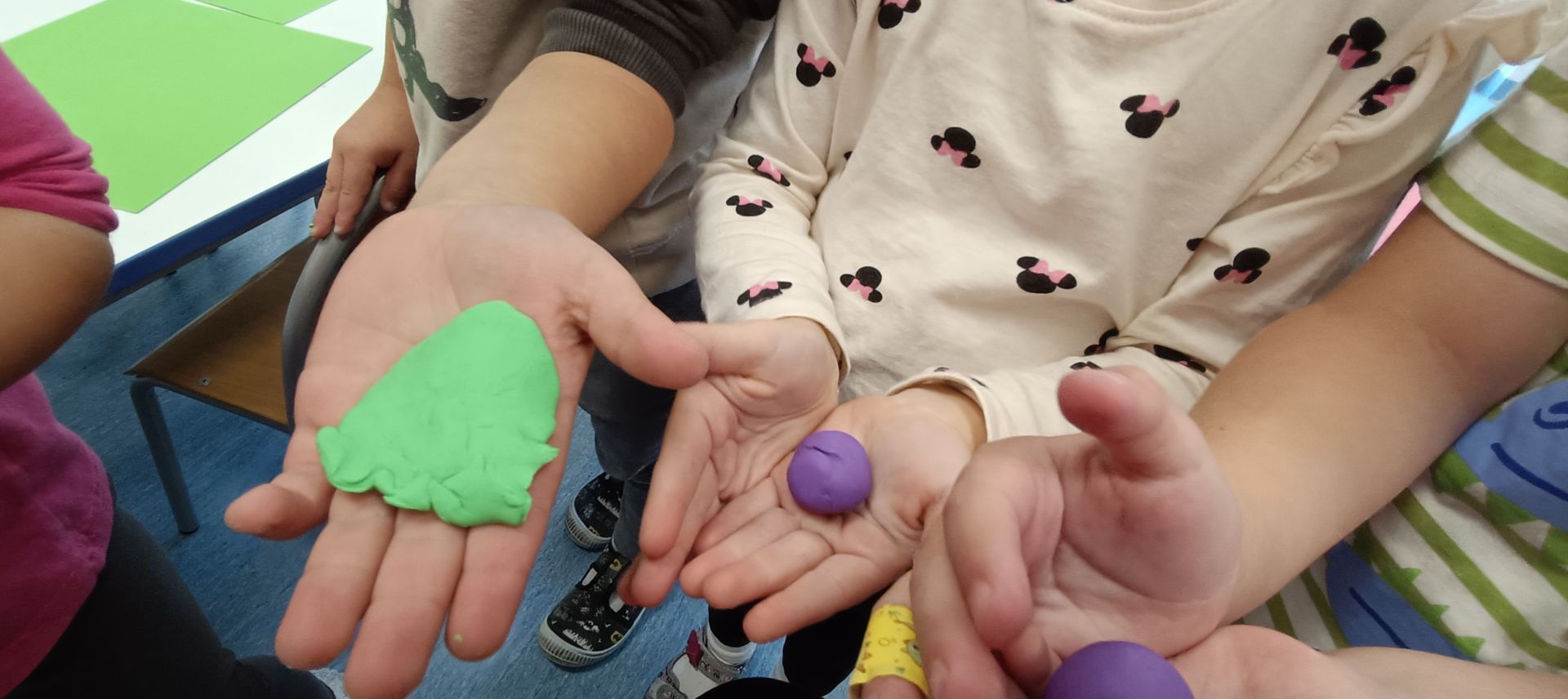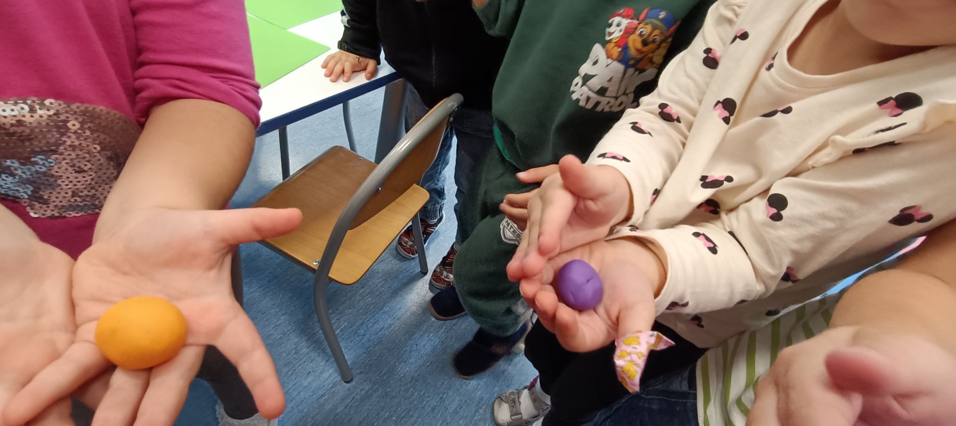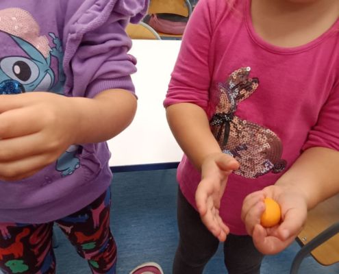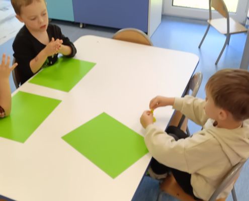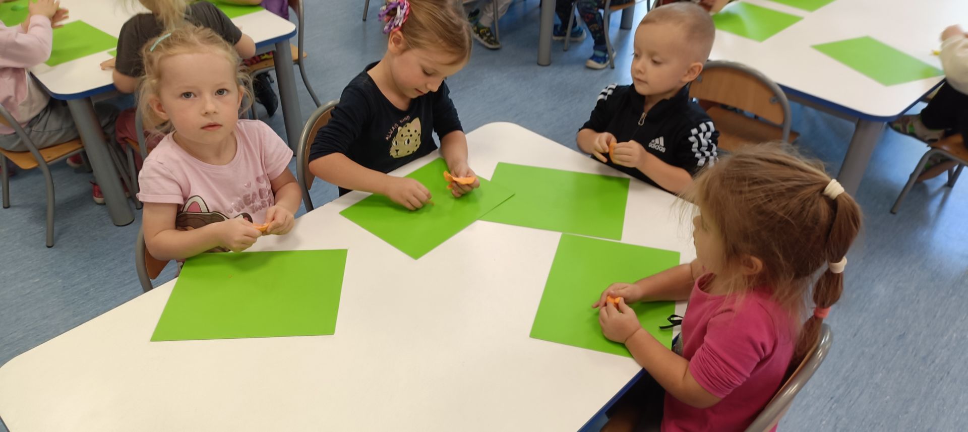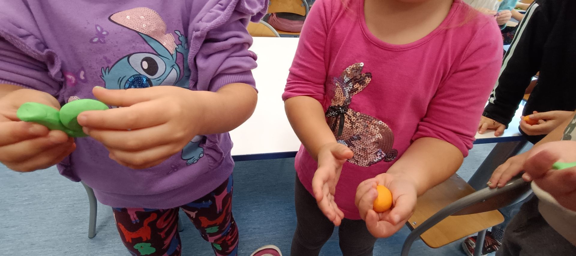Podczas dzisiejszych zajęć ćwiczyliśmy motorykę małą poprzez naukę ugniatania plasteliny, tworzenia wałeczków oraz kulek.