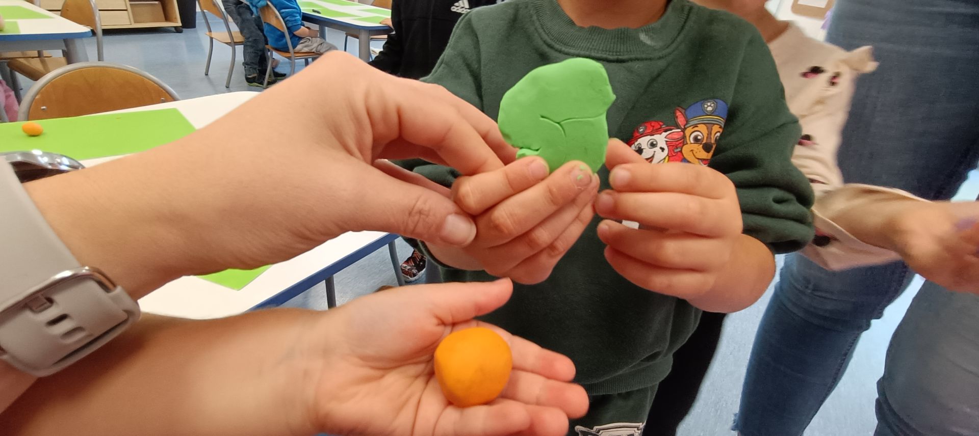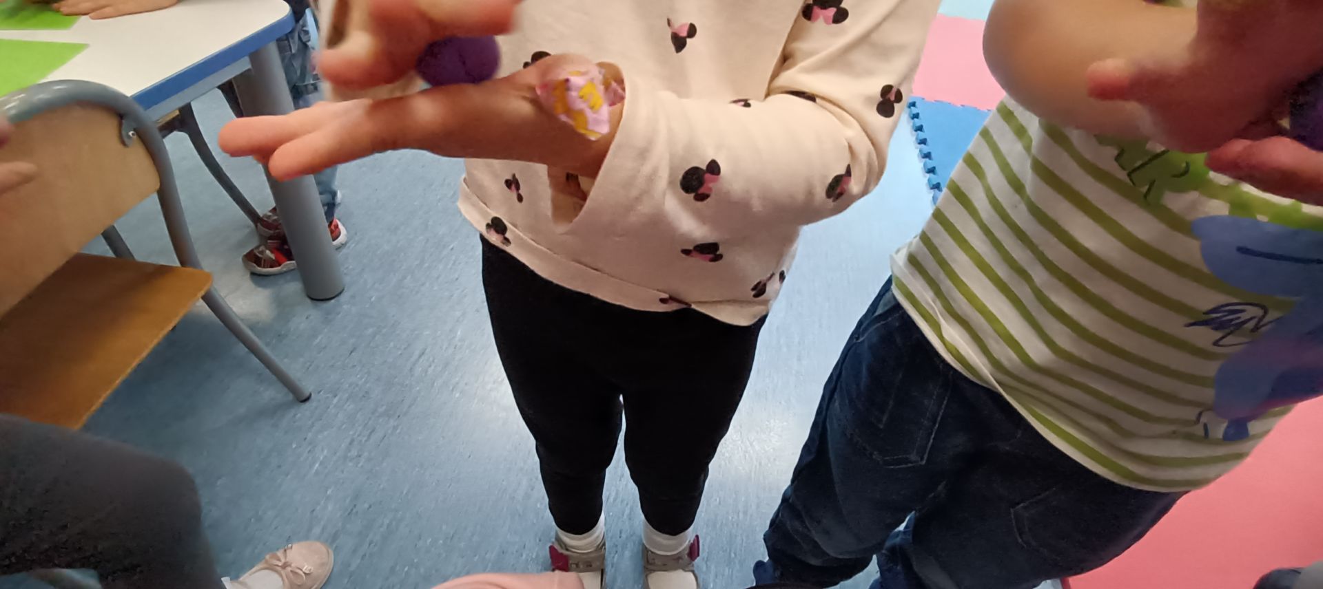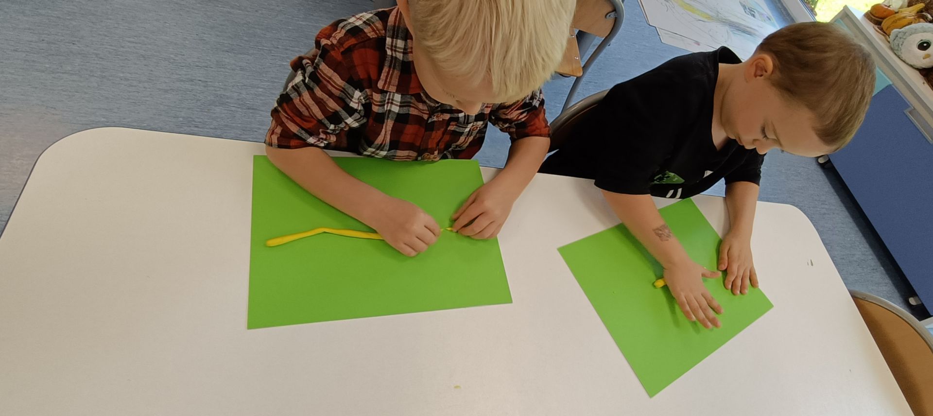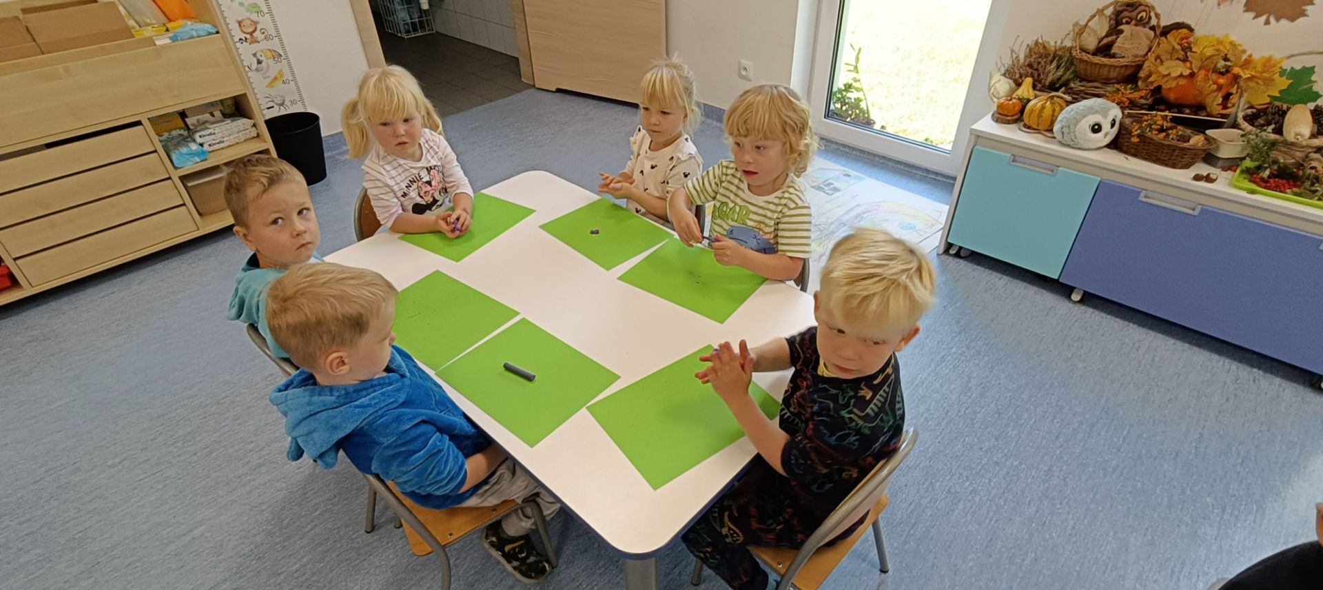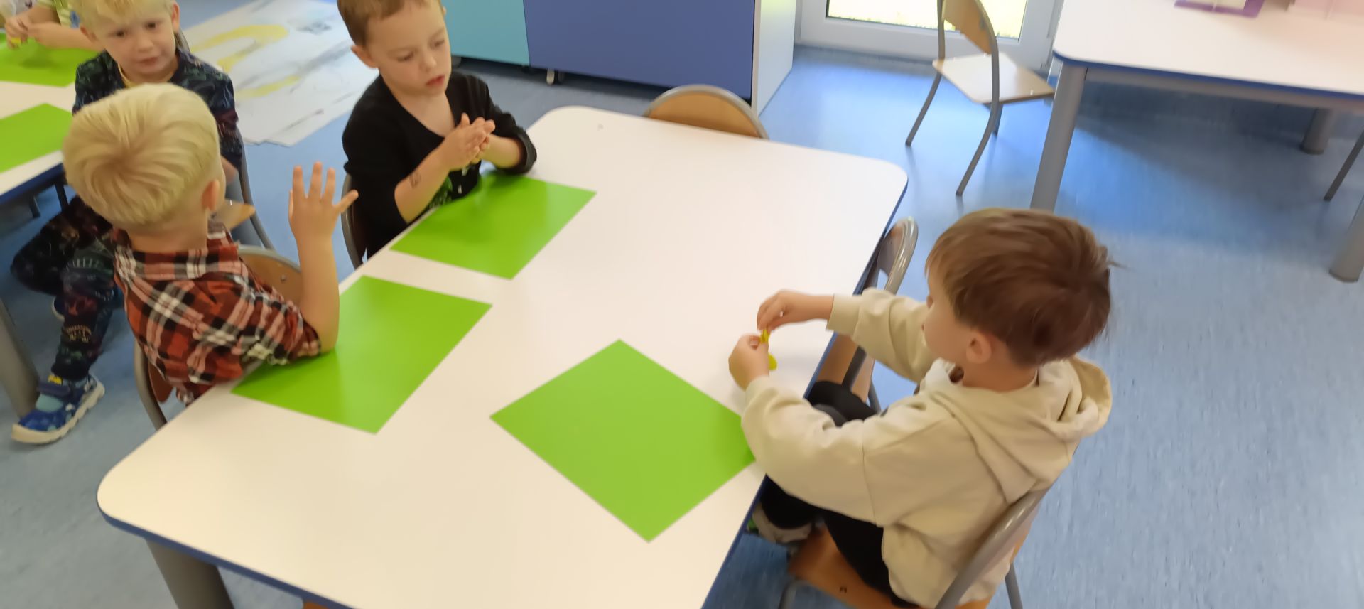 Podczas dzisiejszych zajęć ćwiczyliśmy motorykę małą poprzez naukę ugniatania plasteliny, tworzenia wałeczków oraz kulek.
