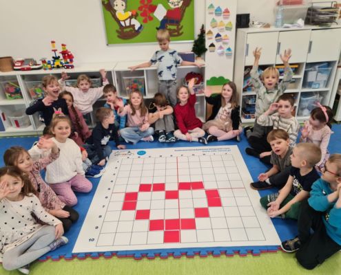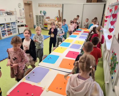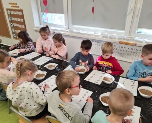 Rozpoznawanie wizytówek kolegów i koleżanek, składanie obrazka z części – nazywanie ptaka, przeliczanie emblematów ptaków, dodawanie i odejmowanie