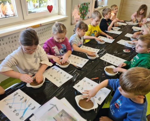 Rytmiczne kreślenie spirali na temat „Laurka dla dziadków” wg metody Edukacji przez ruch D. Dziamskiej