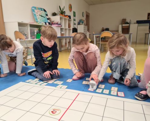 Kodowanie na dywanie „Kochamy naszych Dziadków”- układanie symetrii, kalambury, wyznaczanie trasy robota Genibot, muzyczne „Sto lat!”