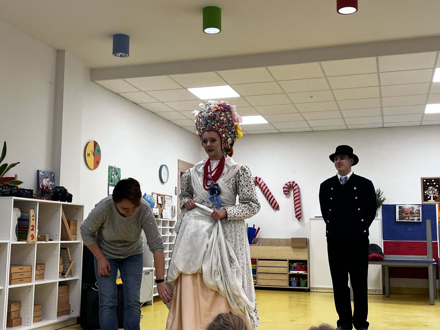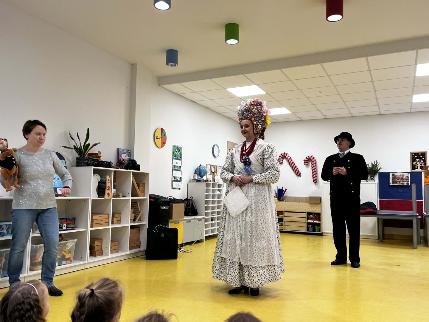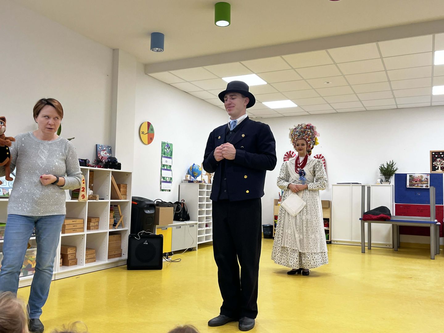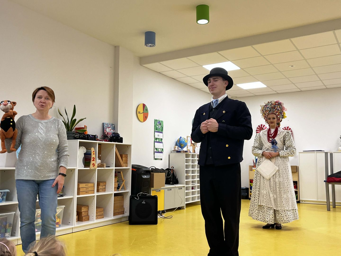 Pierwszy w tym roku koncert edukacyjny Kotka Tralalotka zabrał nas do historii stroju bamberki i bambra. Dzieci podczas spotkania miały okazję zobaczyć jak wygląd owy strój kobiecy i męski. U dziewczynek pojawił się ogromny uśmiech, gdy zobaczyły bogato zdobione suknie, pełne koronek i haftów, składające się z kilku warstw. Wybrane osoby miały okazję przymierzyć bogato zdobioną kwiatami i kokardami czapkę takiej damy. Podczas koncertu dowiedzieliśmy się także jakie są ulubione potrawy bambrów oraz tańce. Czekamy na kolejne muzyczne doświadczenia!
