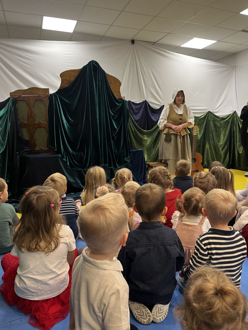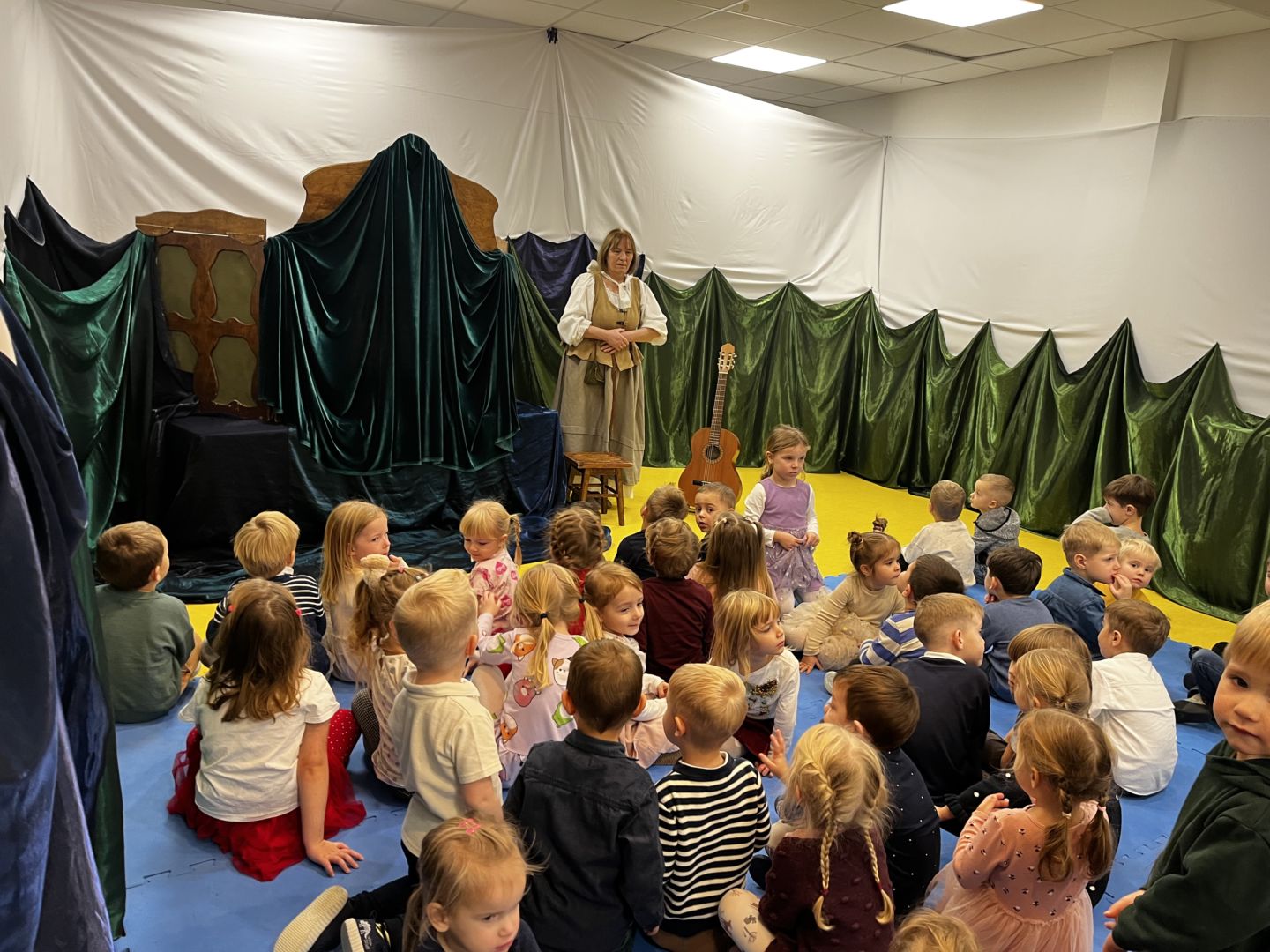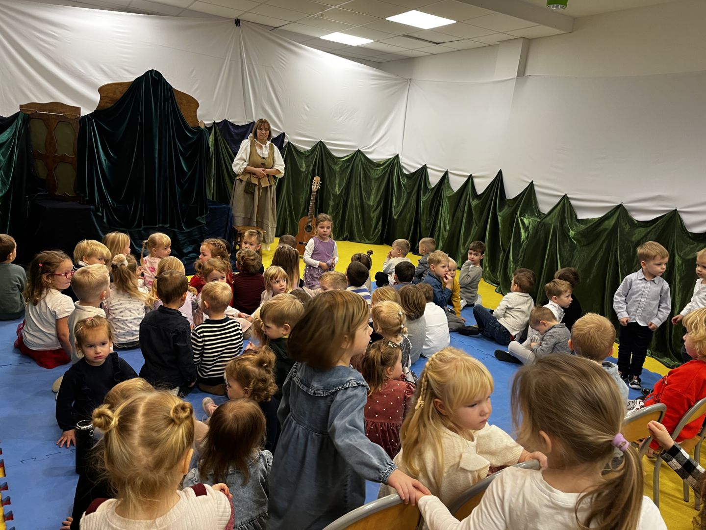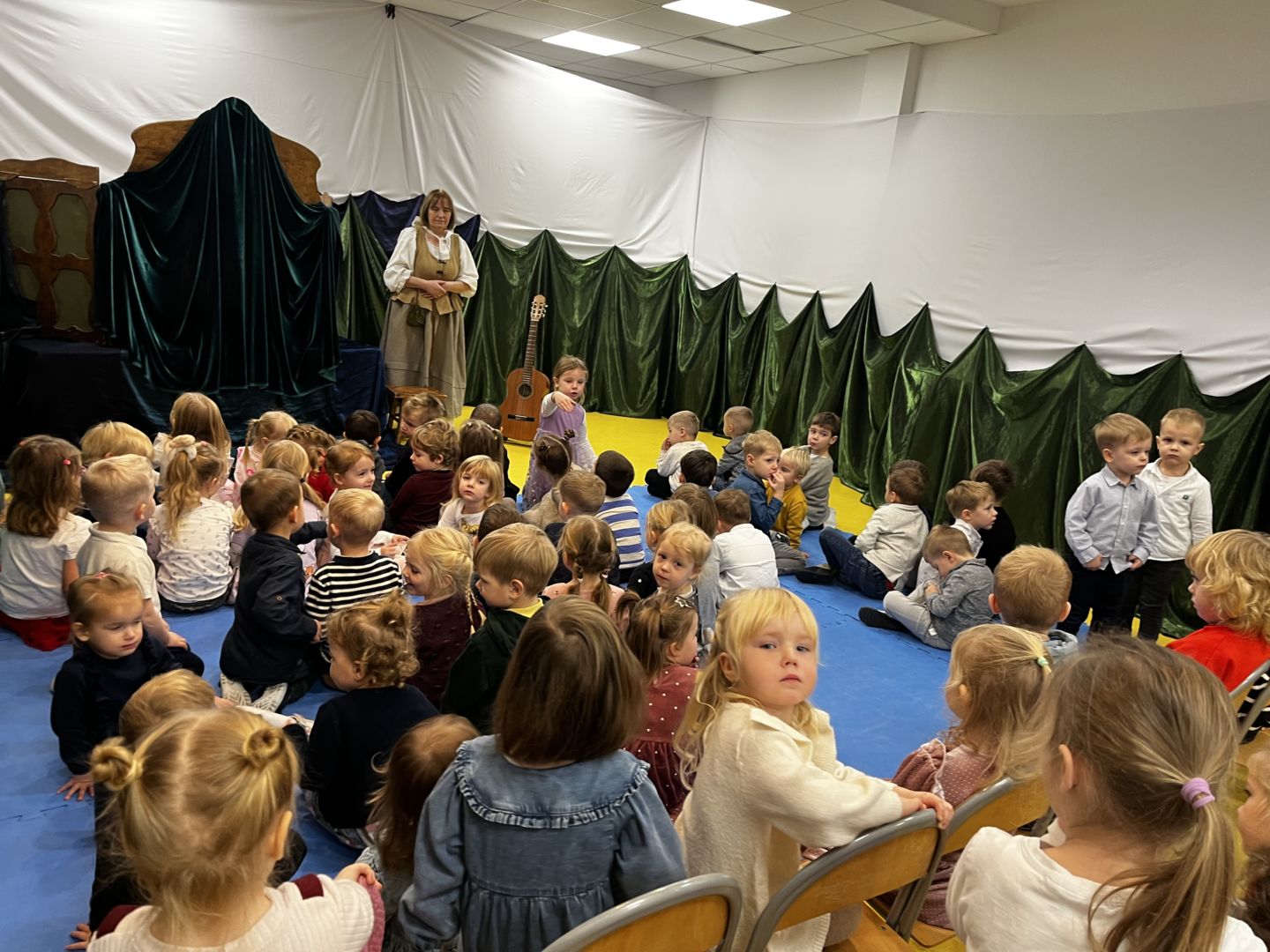 Dnia 26 listopada do naszego przedszkola przyjechał Teatr Cieni Latarenka z niesamowitą legenda o smoku wawelskim. Tego dnia wszystkie dzieci miały na sobie eleganckie stroje jak w prawdziwym teatrze. Sala Krainy Żółtej zamieniał momentalnie wystrój i przeniosła nas w dawne czasy. Bawiarka gasząc światła i zapalając latarenkę przeniosła nas w magiczną krainę pełną księżniczek odważnych rycerzy oraz smoka. Z dziecięcych twarzy nie znikał uśmiech zachwytu a oczy przepełniała ciekawość . Czekamy na następne przybory z Teatrem.
