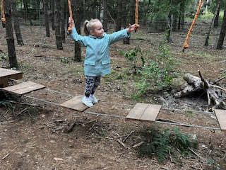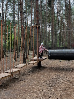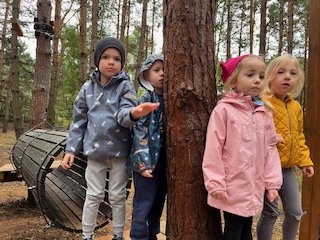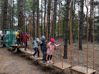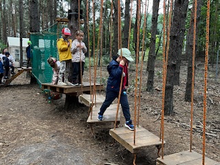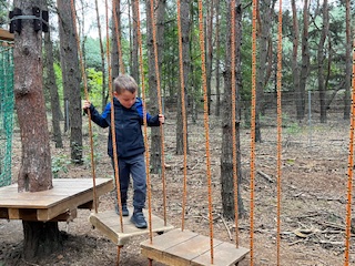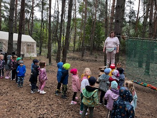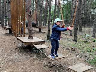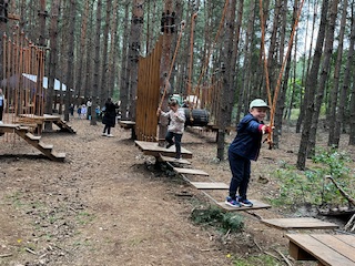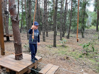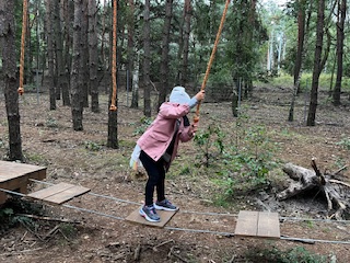 Pierwszym Punktem naszej wycieczki okazały się dwa niesamowite parki linowe, na których dzieci sprawdzały swoją zwinność osiłka. Następnie Pani Prowadząca zabrała dzieci na poszukiwania zaginionych skarbów i robienie magnesów. Na dzieci po niesamowitym wysiłku czekała przepyszna zupa pomidorowa. To była niezwykła, leśna przygoda.