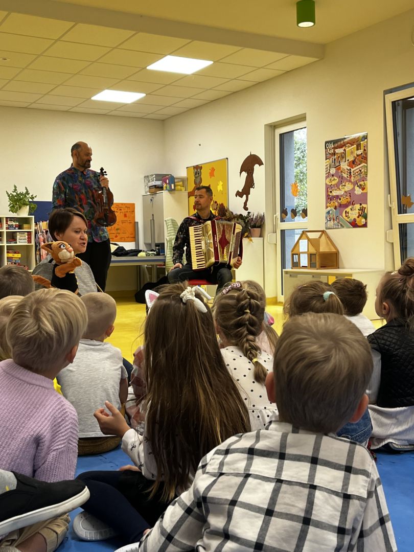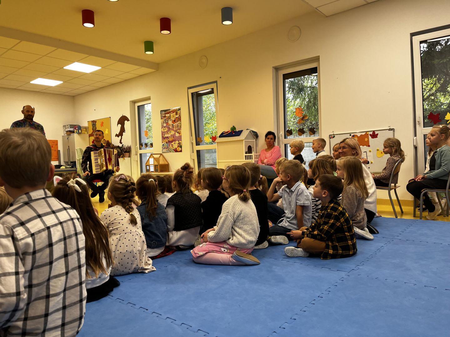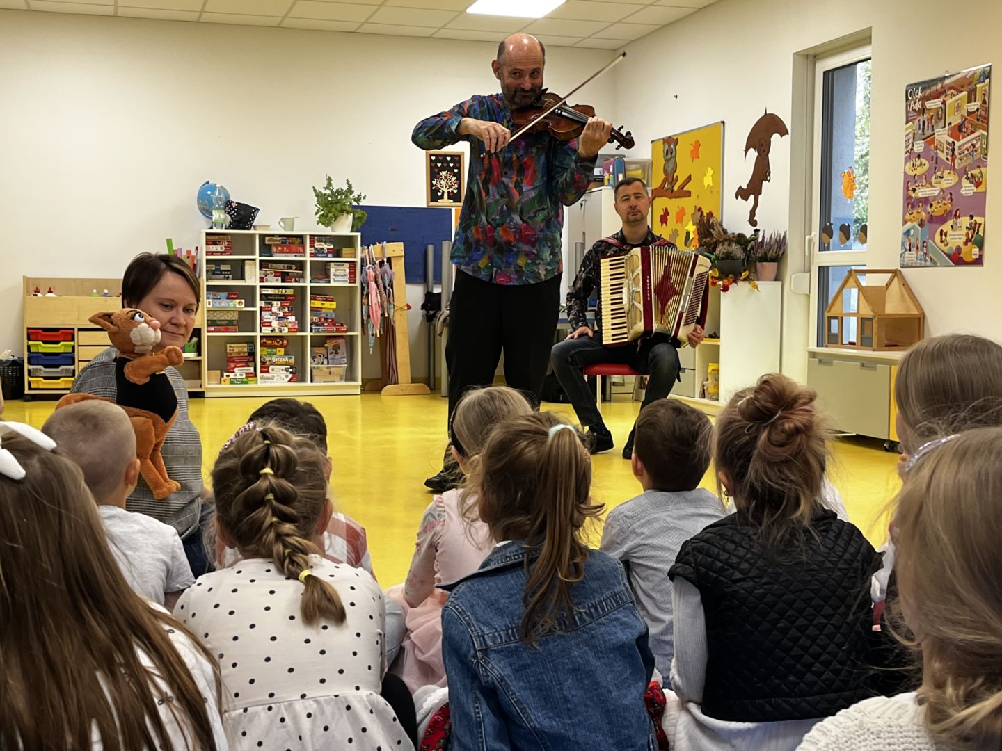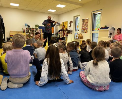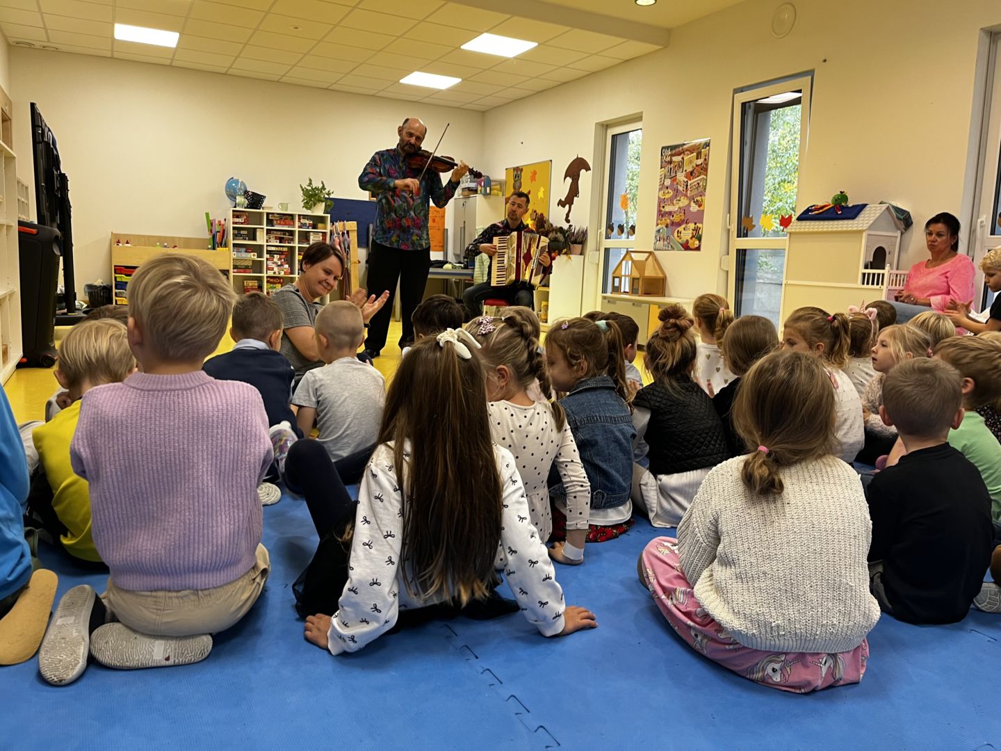 Dnia 8 października do naszego przedszkola poraź pierwszy w nowym roku przedszkolnym przybył naszulubiony Kotek Tralalotek. Jego występ nosił nazwę „Kiedy skrzypki grają”Podczas występu muzyczny kotek opowiedział nam jak powstają skrzypce oraz kto je wykonuje. Dzieci odkryły co oznaczę „drapanie skrzypiec „ oraz jak brzmią dźwięki zwierzać leśnych. To była niesamowita przygoda, odkrywać z Kotkiem dźwięki naszych leśnych przyjaciół.
