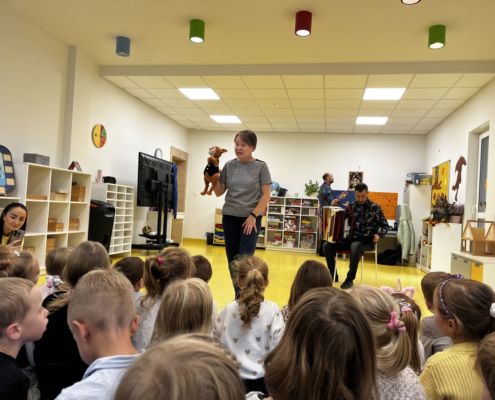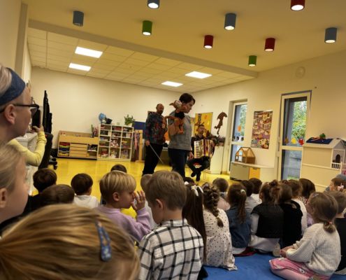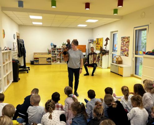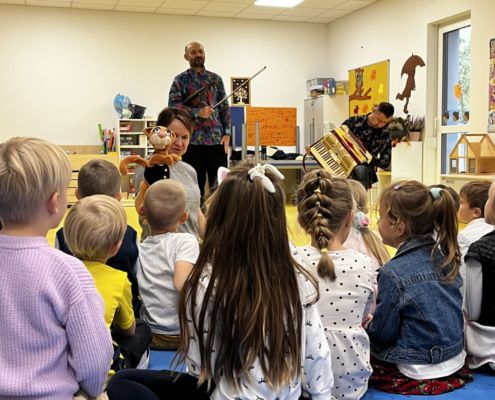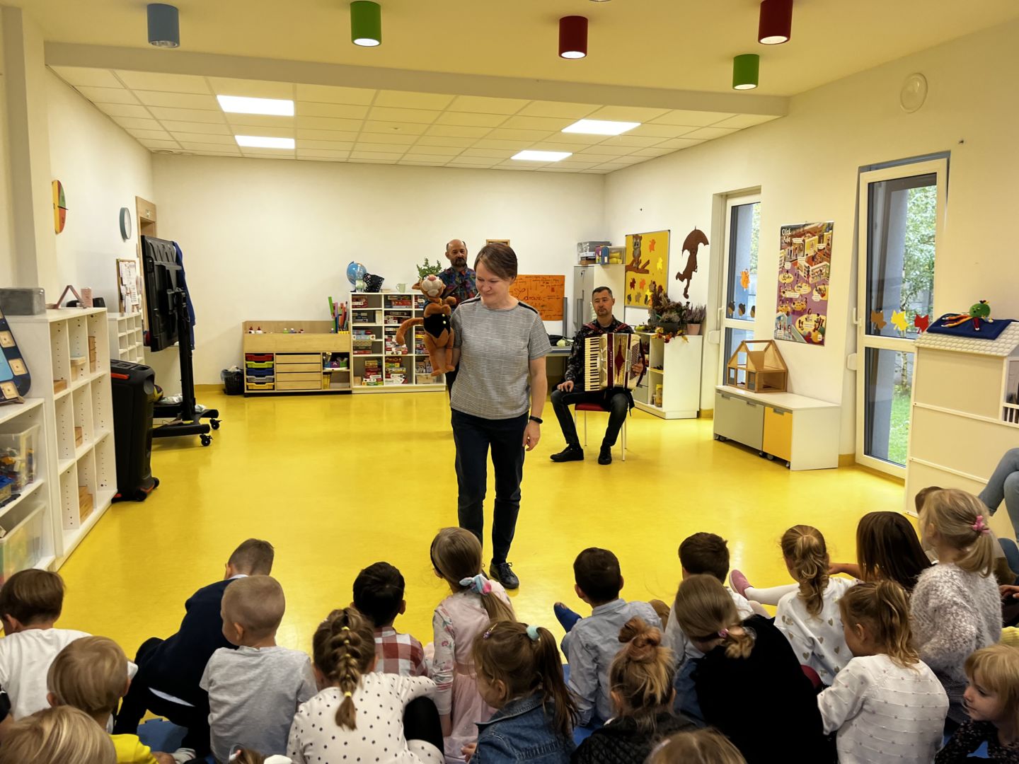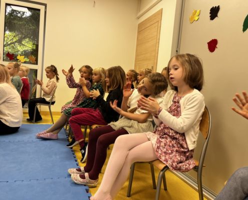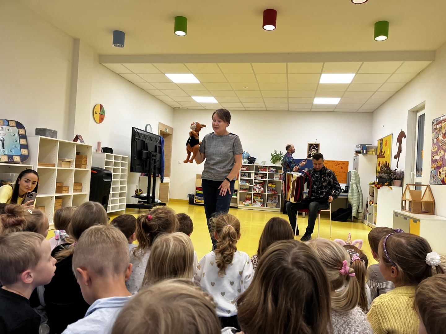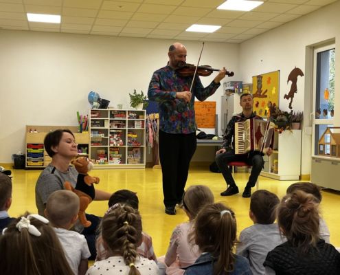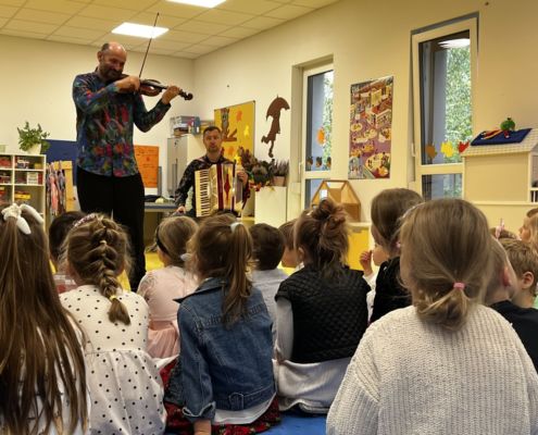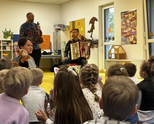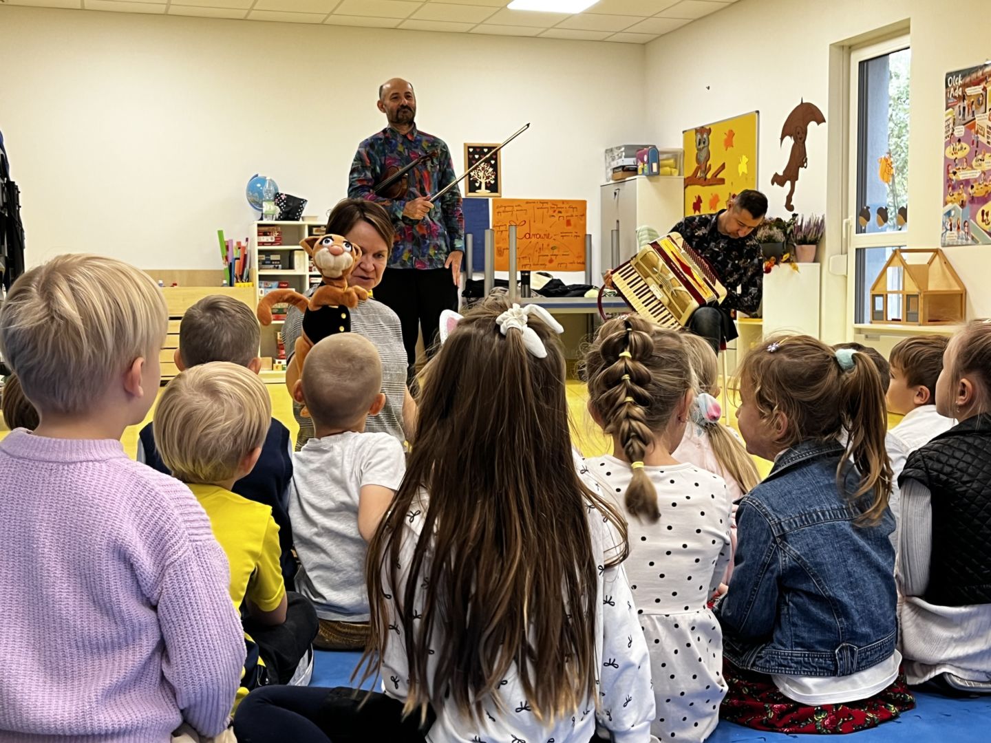 Dnia 8 października do naszego przedszkola poraź pierwszy w nowym roku przedszkolnym przybył naszulubiony Kotek Tralalotek. Jego występ nosił nazwę „Kiedy skrzypki grają”Podczas występu muzyczny kotek opowiedział nam jak powstają skrzypce oraz kto je wykonuje. Dzieci odkryły co oznaczę „drapanie skrzypiec „ oraz jak brzmią dźwięki zwierzać leśnych. To była niesamowita przygoda, odkrywać z Kotkiem dźwięki naszych leśnych przyjaciół.