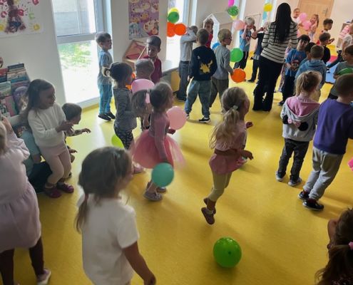 W piątek 19 września 2025 r. w naszym przedszkolu obchodziliśmy cudowne święto, zarówno małych, jak i dużych dzieci uczęszczających do naszego Przedszkola. Dzień Przedszkolaka w tym roku każdy przywitał tanecznym krokiem już od samego wejścia! Każda grupa uczestniczyła w niesamowitym baliku, a także świętowała w swojej sali. Ten dzień spędziliśmy pod znakiem radości, muzyki, zabawy i beztroski. Na dzieci czekały też niespodzianki ufundowane przez Radę Rodziców, za co bardzo dziękujemy, a naszym dzieciom życzymy dużo wspaniałych przygód, przyjaciół i radości każdego dnia!
