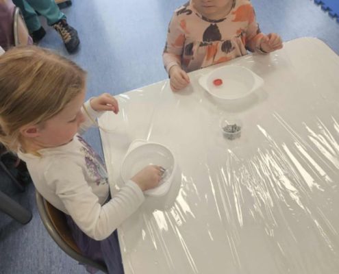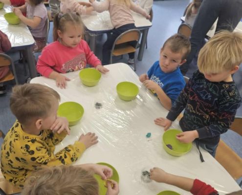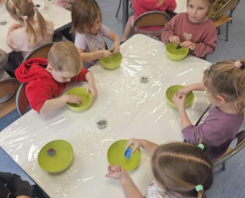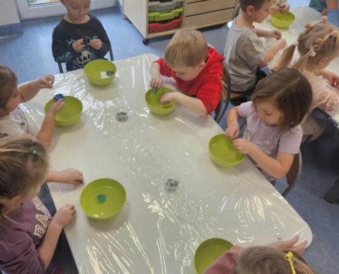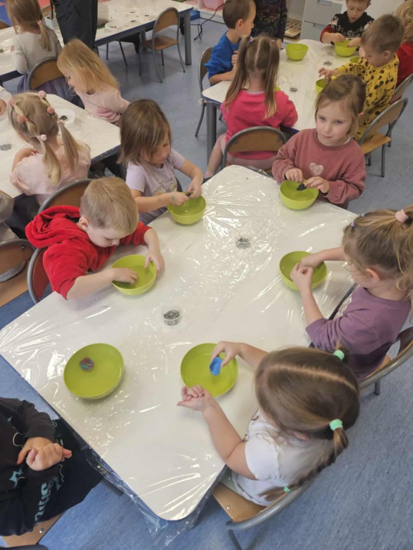 W połowie listopada z kolejnymi niesamowitymi eksperymentami przyjechała do nas pracownia Edukacyjna „Wiatraki” tym razem kraina pomarańczowa zajęła się odkrywaniem wodnych eksperymentów w pozostałe grupy podczas warsztatów sprawdzały co pływa a co tonie. Pojawiła się legenda o Archimedesie oraz szereg niesamowitych właściwości wody.