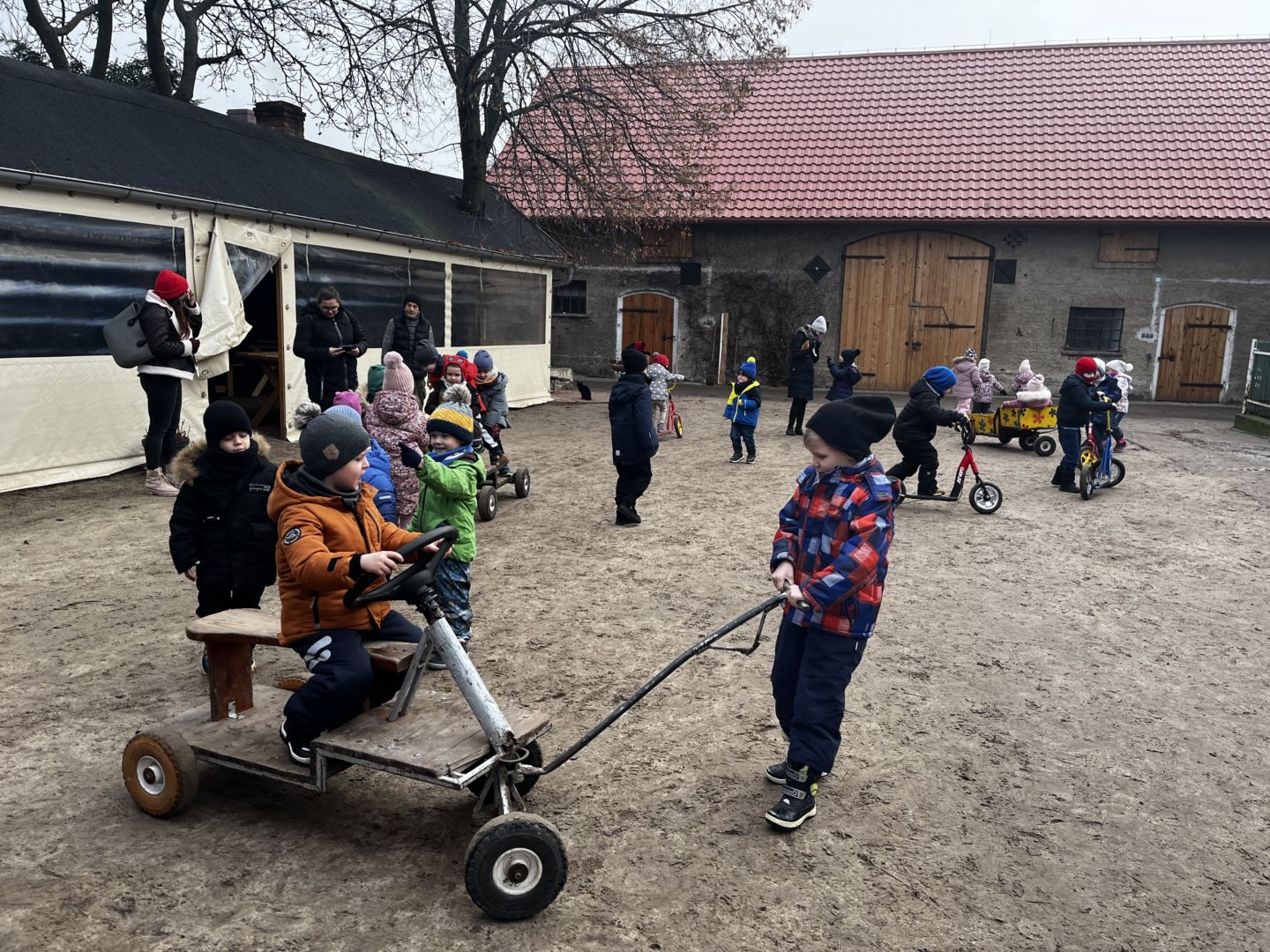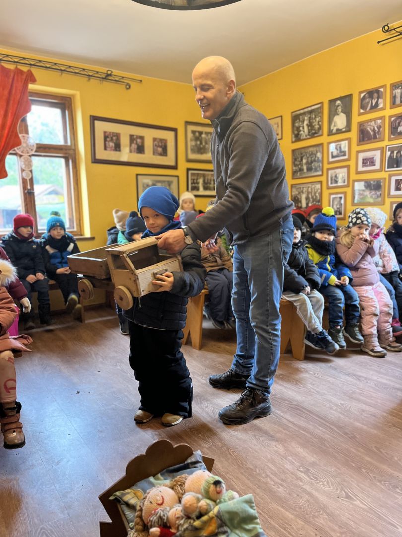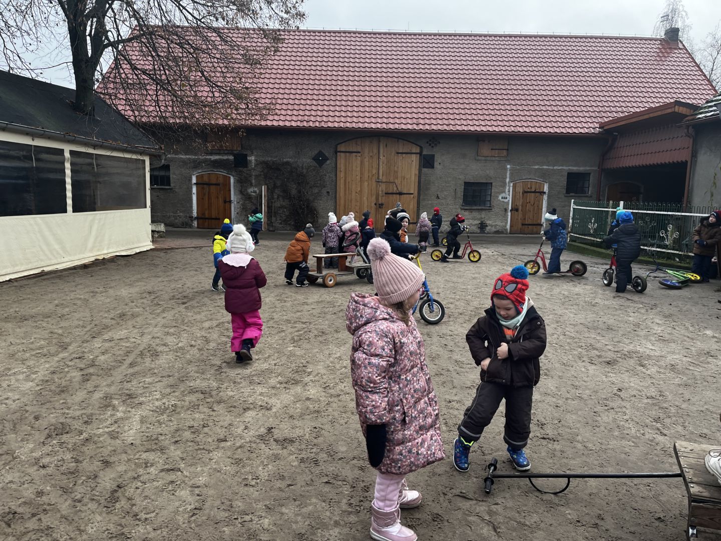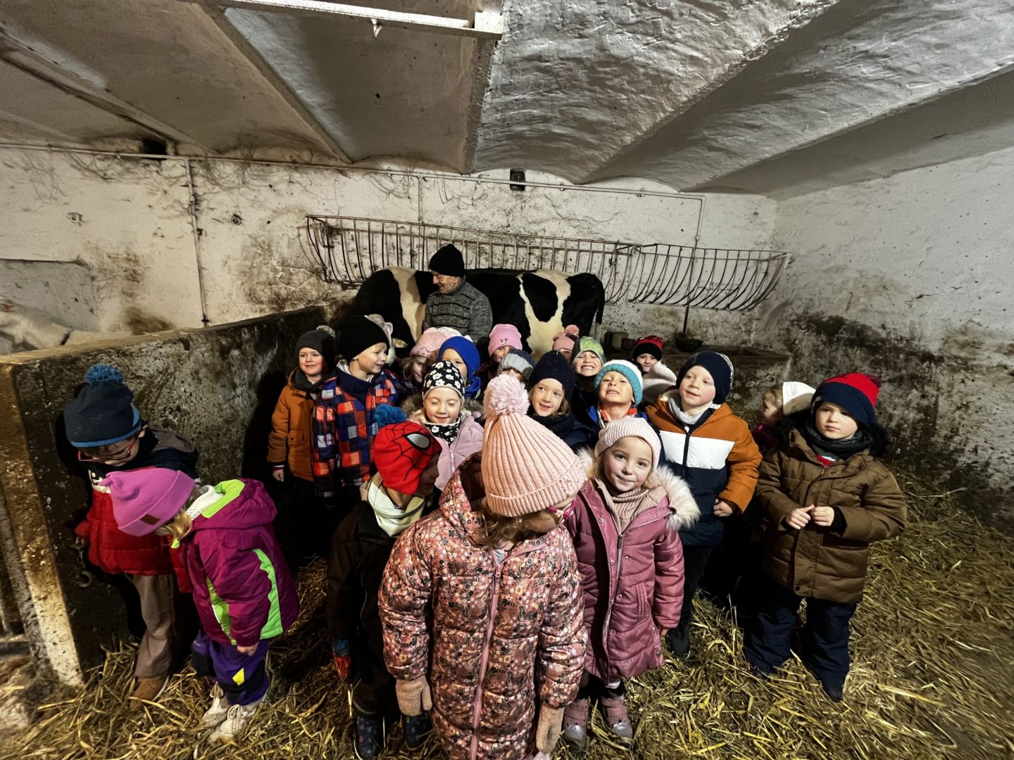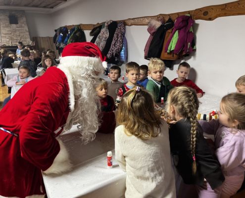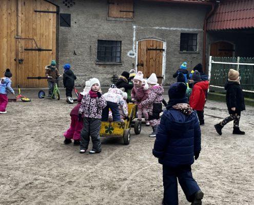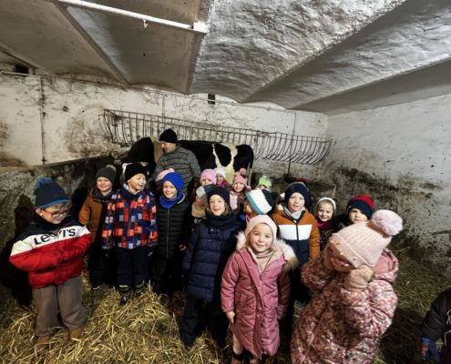 Kraina czerwona, fioletowa i żółta grudzień przywitała niesamowita wycieczka do Kleczewa. Odwiedziliśmy Starą Chatę u Kowala. Dzieci przywitała ciepłą herbatą, kolorowe kanapki i przepyszne pierogi. Następnie na salę wszedł Mikołaj ze słodkościami. Cudowny Pan Krzysztof oprowadził nas po całym gospodarstwie pokazując wszystkim ich mieszkańców. Kozy, Krowy, króliki. Po napełnieniu brzuchów i ogrzaniu się dzieci mogły wybiegać się i skorzystać z atrakcji na świeżym powietrzu. Zabawy skończyły się przejażdżką traktorem i ciepłym posiłkiem przy ognisku. W trakcie naszej przygody dzieci zobaczyły jak kowal wyrabia podkowy oraz zwiedziły Starą Chatę. To była wyprawa pełną przygód.