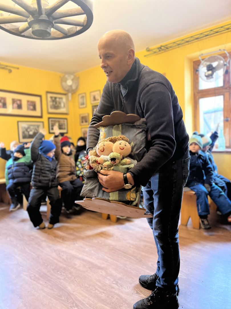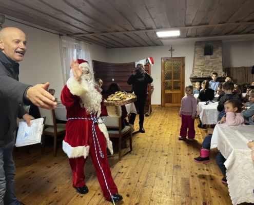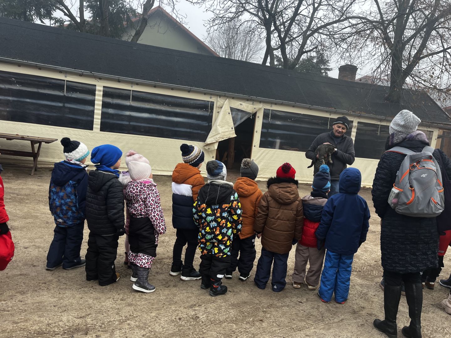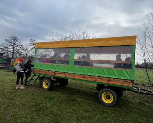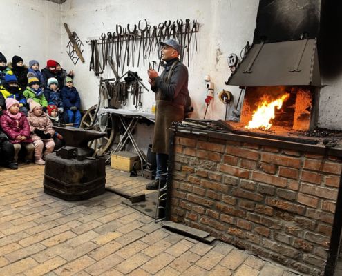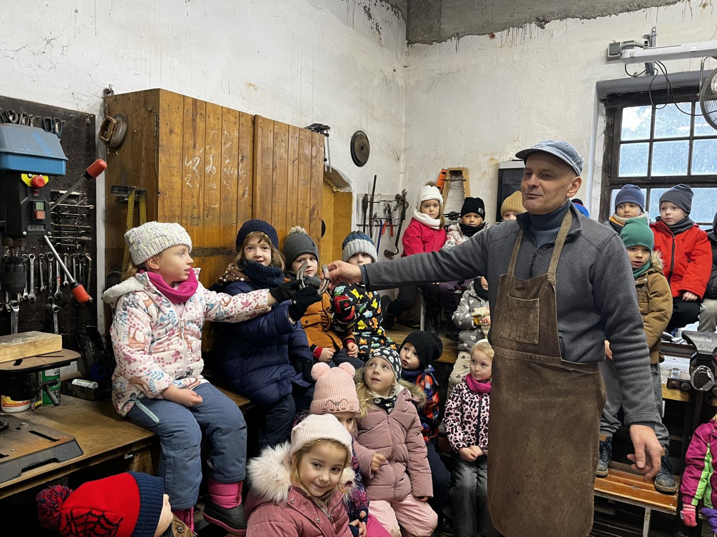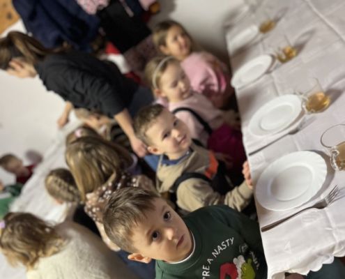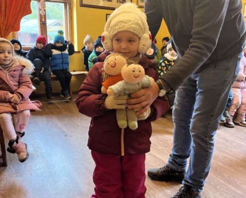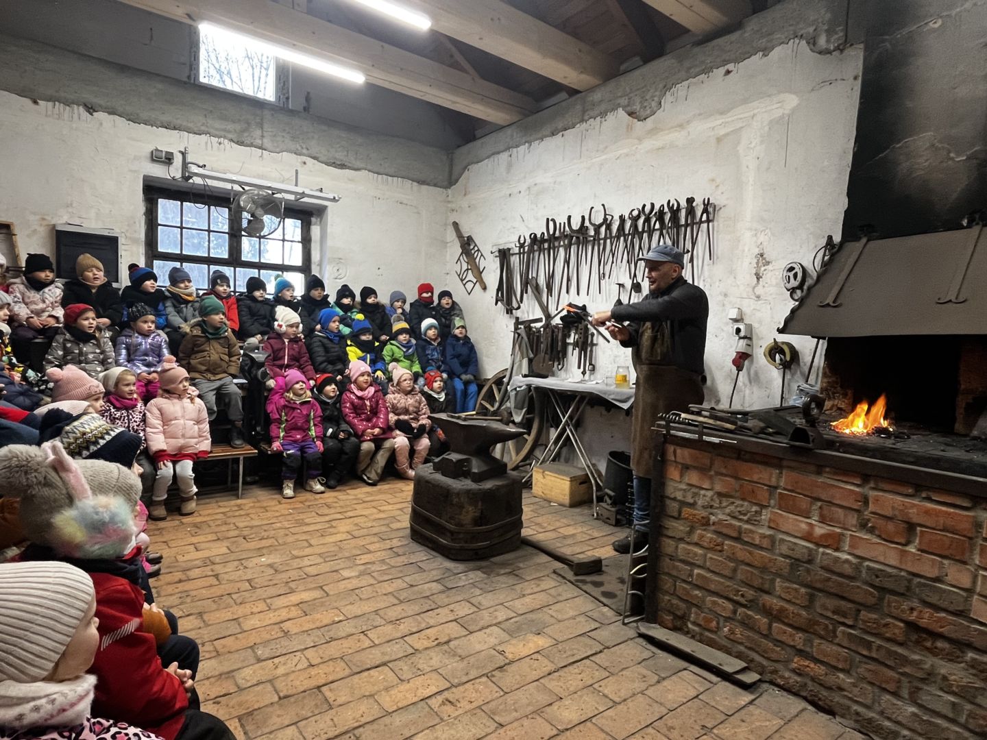 Kraina czerwona, fioletowa i żółta grudzień przywitała niesamowita wycieczka do Kleczewa. Odwiedziliśmy Starą Chatę u Kowala. Dzieci przywitała ciepłą herbatą, kolorowe kanapki i przepyszne pierogi. Następnie na salę wszedł Mikołaj ze słodkościami. Cudowny Pan Krzysztof oprowadził nas po całym gospodarstwie pokazując wszystkim ich mieszkańców. Kozy, Krowy, króliki. Po napełnieniu brzuchów i ogrzaniu się dzieci mogły wybiegać się i skorzystać z atrakcji na świeżym powietrzu. Zabawy skończyły się przejażdżką traktorem i ciepłym posiłkiem przy ognisku. W trakcie naszej przygody dzieci zobaczyły jak kowal wyrabia podkowy oraz zwiedziły Starą Chatę. To była wyprawa pełną przygód.