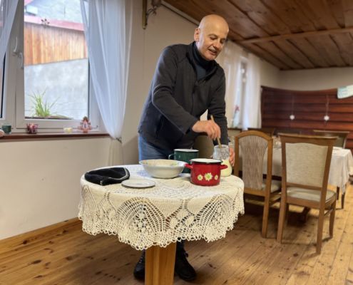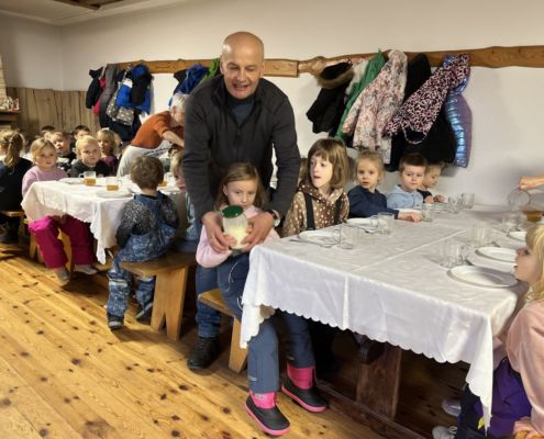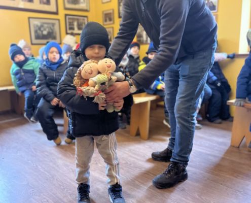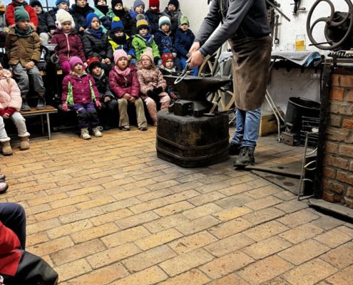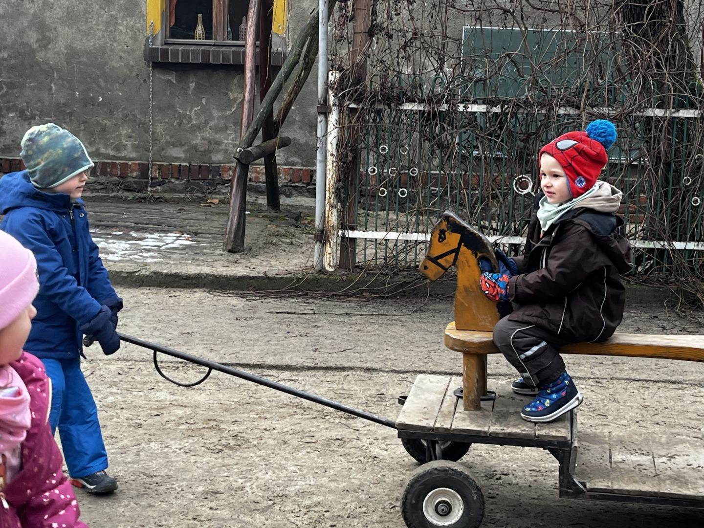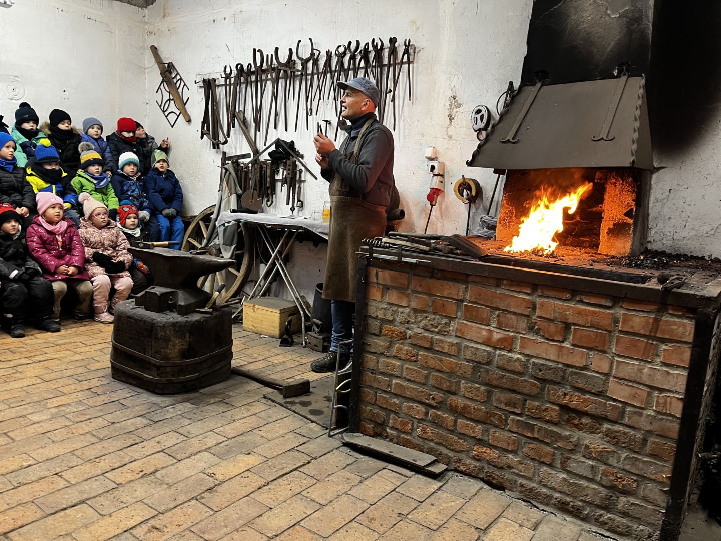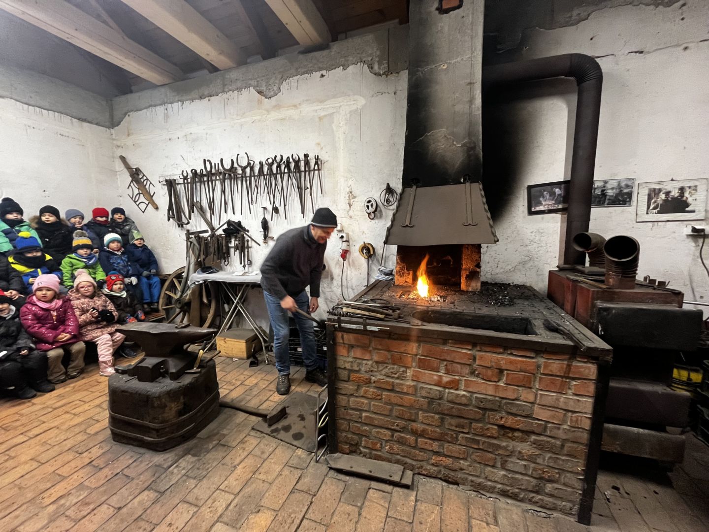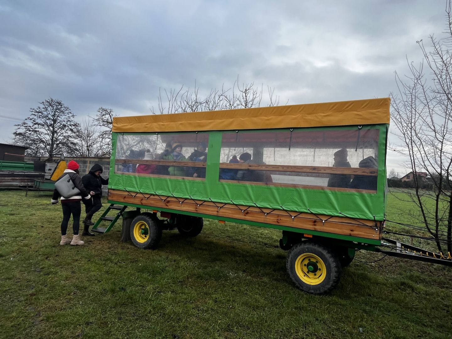 Kraina czerwona, fioletowa i żółta grudzień przywitała niesamowita wycieczka do Kleczewa. Odwiedziliśmy Starą Chatę u Kowala. Dzieci przywitała ciepłą herbatą, kolorowe kanapki i przepyszne pierogi. Następnie na salę wszedł Mikołaj ze słodkościami. Cudowny Pan Krzysztof oprowadził nas po całym gospodarstwie pokazując wszystkim ich mieszkańców. Kozy, Krowy, króliki. Po napełnieniu brzuchów i ogrzaniu się dzieci mogły wybiegać się i skorzystać z atrakcji na świeżym powietrzu. Zabawy skończyły się przejażdżką traktorem i ciepłym posiłkiem przy ognisku. W trakcie naszej przygody dzieci zobaczyły jak kowal wyrabia podkowy oraz zwiedziły Starą Chatę. To była wyprawa pełną przygód.