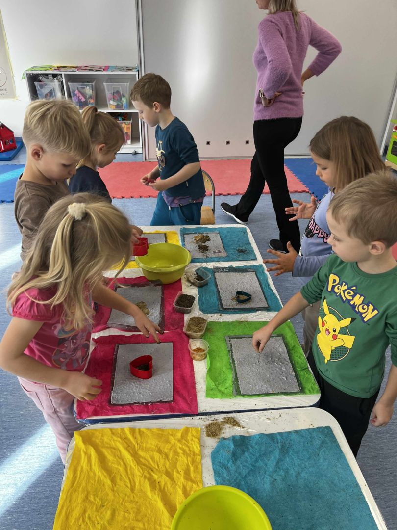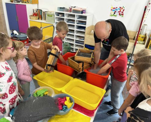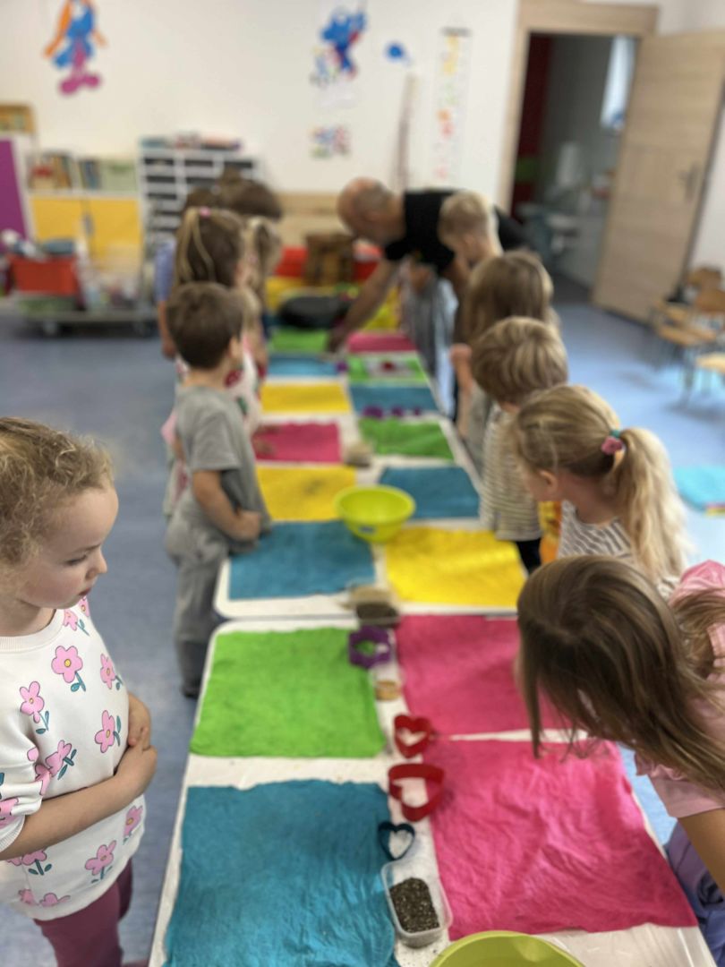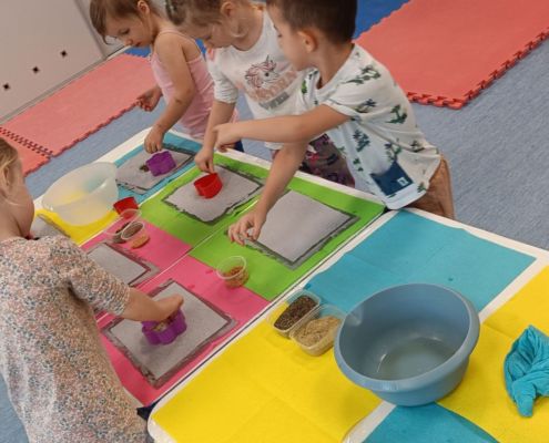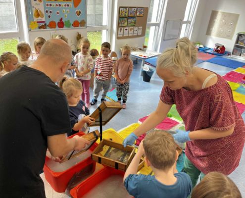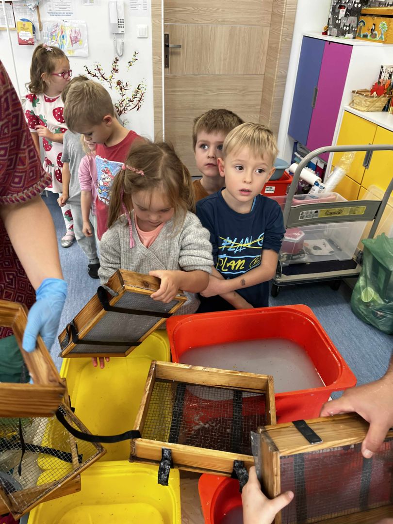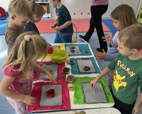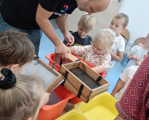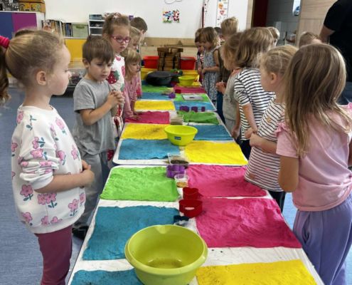 Dnia 22 października, przyjechała do nas Pracownia Edukacyjna Wiatrak. Pozwoliła nam przenieść się w krainę wynalazku i cofnąć o kilka epok wstecz. Niesamowite było to, że nasi mali odkrywcy sami zajęli się wyrabianiem papieru i ozdabianiem go. Dzieci nie mogły wyjść z podziwu, ze swoimi rękoma czerpali papier. To była niesamowita przygoda!