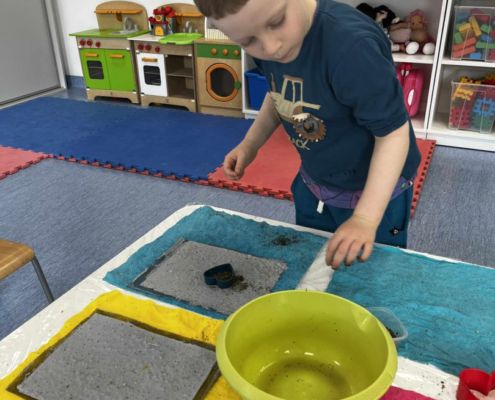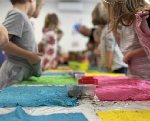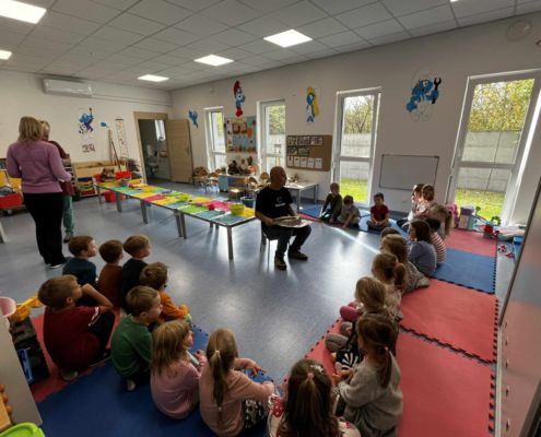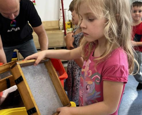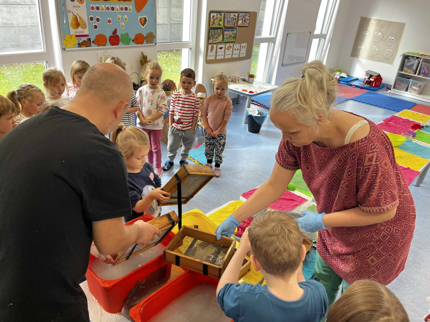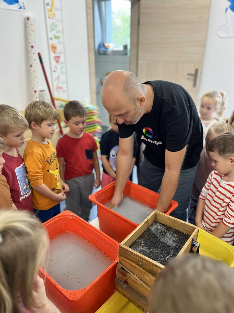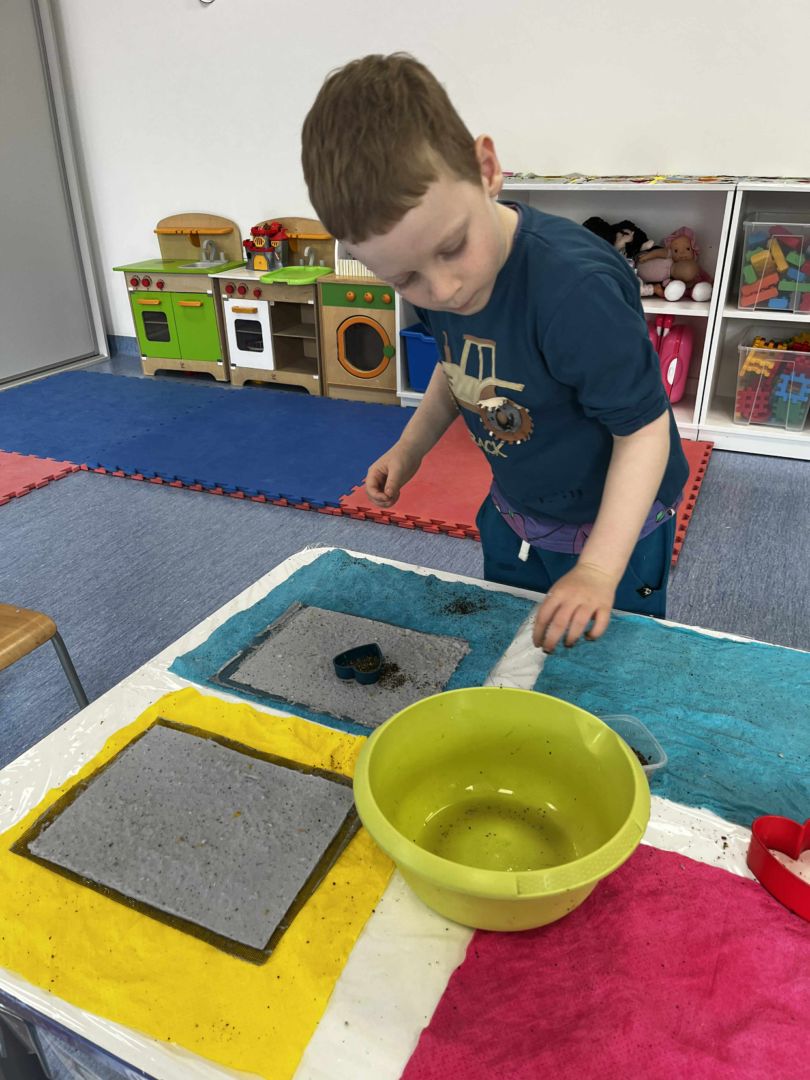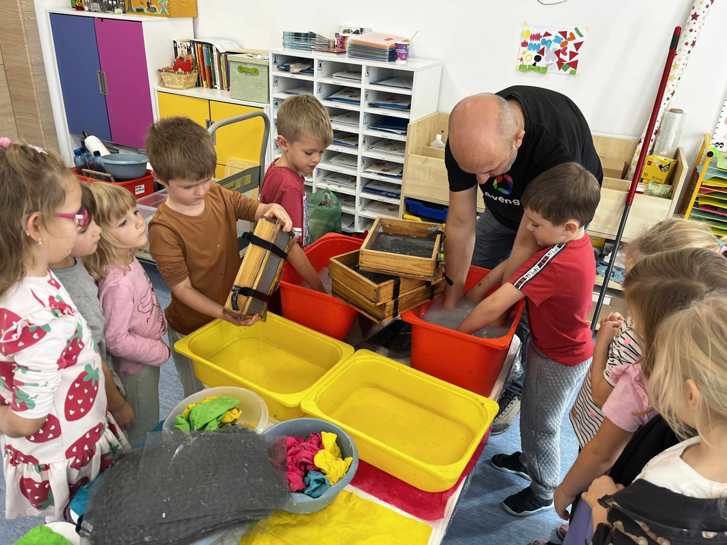 Dnia 22 października, przyjechała do nas Pracownia Edukacyjna Wiatrak. Pozwoliła nam przenieść się w krainę wynalazku i cofnąć o kilka epok wstecz. Niesamowite było to, że nasi mali odkrywcy sami zajęli się wyrabianiem papieru i ozdabianiem go. Dzieci nie mogły wyjść z podziwu, ze swoimi rękoma czerpali papier. To była niesamowita przygoda!